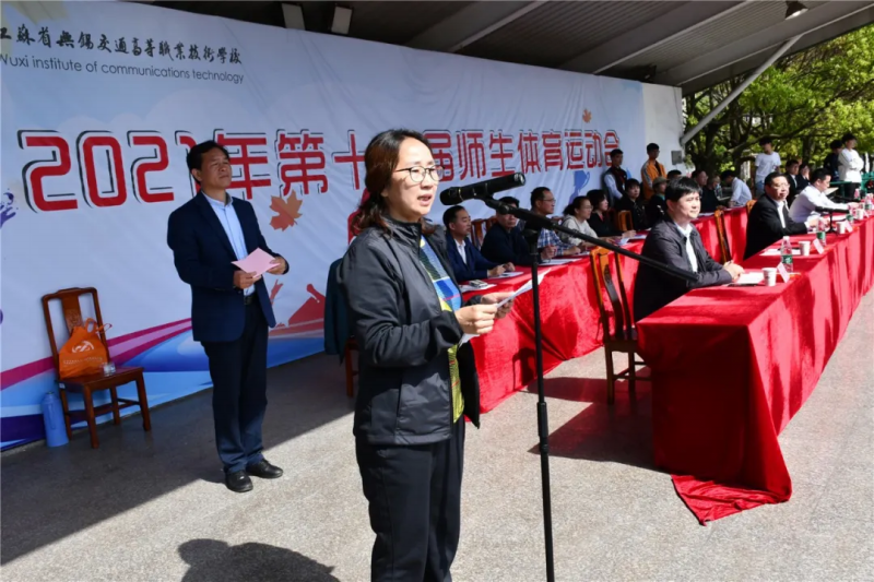 學校黨委副書記、紀委書記朱雨蘭致辭。她表示此次運動會是在學?!笆奈濉币?guī)劃開局之年,持續(xù)推進領航學校建設,搶抓蘇錫常都市圈職業(yè)教育改革發(fā)展的關鍵之年召開的。具有非同尋常的歷史意義。她希望全體運動員要秉承更高、更快、更強的奧林匹克精神,以高昂的斗志和頑強拼搏的精神,嚴守活動紀律,遵守比賽規(guī)則,尊重裁判裁定,賽出風格、賽出水平、賽出友誼。同時也希望裁判員遵守裁判員守則,做到公平、公正;全體工作人員要忠于職守、熱情服務,保障安全。最后她希望廣大師生員工以強健的體魄、昂揚的斗志,在學校高質量發(fā)展的進程中發(fā)揮更加積極的作用,以最具活力的姿態(tài)向慶祝建黨一百周年獻禮!