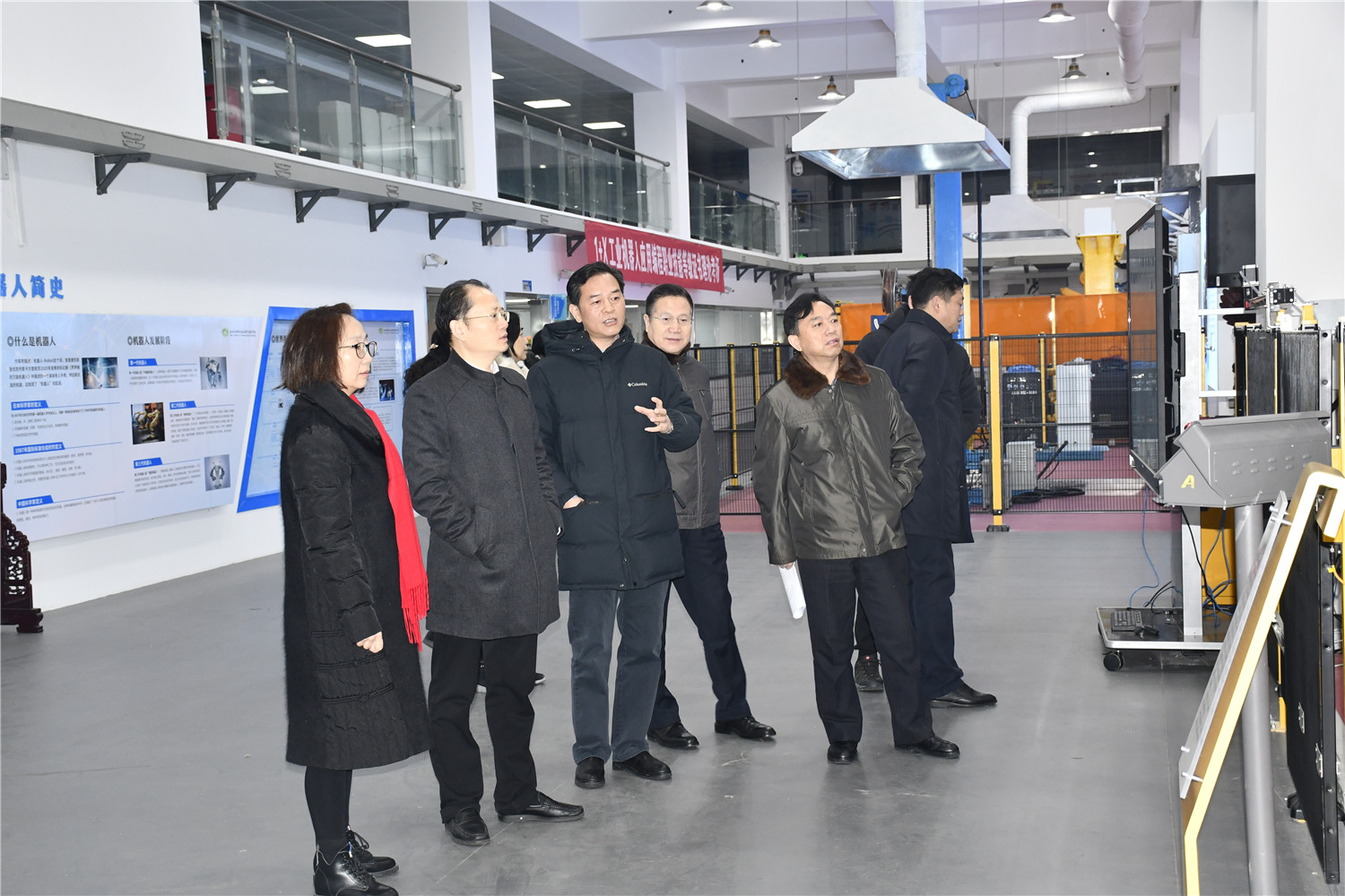汪廳長一行參觀了學(xué)校交通裝備工業(yè)機(jī)器人實(shí)訓(xùn)基地、江蘇省交通運(yùn)輸物聯(lián)網(wǎng)技術(shù)實(shí)訓(xùn)基地、江蘇省交通船文化中心、校園書店、黨建文化長廊、智慧校園視頻監(jiān)控室等,詳細(xì)了解學(xué)校黨建和業(yè)務(wù)工作的做法和成效。汪廳長對學(xué)校黨建工作給予了充分肯定和高度評價。汪廳長認(rèn)為,學(xué)校切實(shí)加強(qiáng)以高質(zhì)量黨建引領(lǐng)教育事業(yè)高質(zhì)量發(fā)展,黨組織建設(shè)不斷強(qiáng)化,工作思路持續(xù)創(chuàng)新,學(xué)校在人才培養(yǎng)、產(chǎn)教融合、辦學(xué)條件、教育教學(xué)改革、思政教育、師資隊(duì)伍建設(shè)等方面取得了一定成效,產(chǎn)教融合深入推進(jìn),人才培養(yǎng)質(zhì)量顯著提升,做到了黨建工作與業(yè)務(wù)工作深度融合,學(xué)校綜合發(fā)展特色強(qiáng)、水平高。