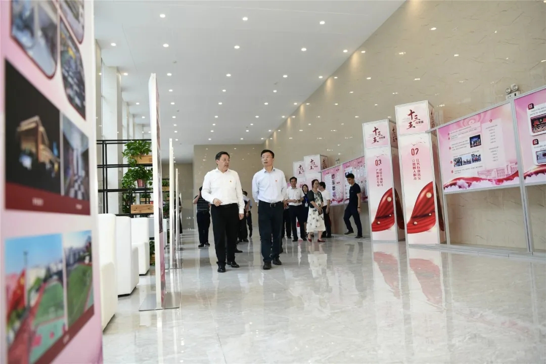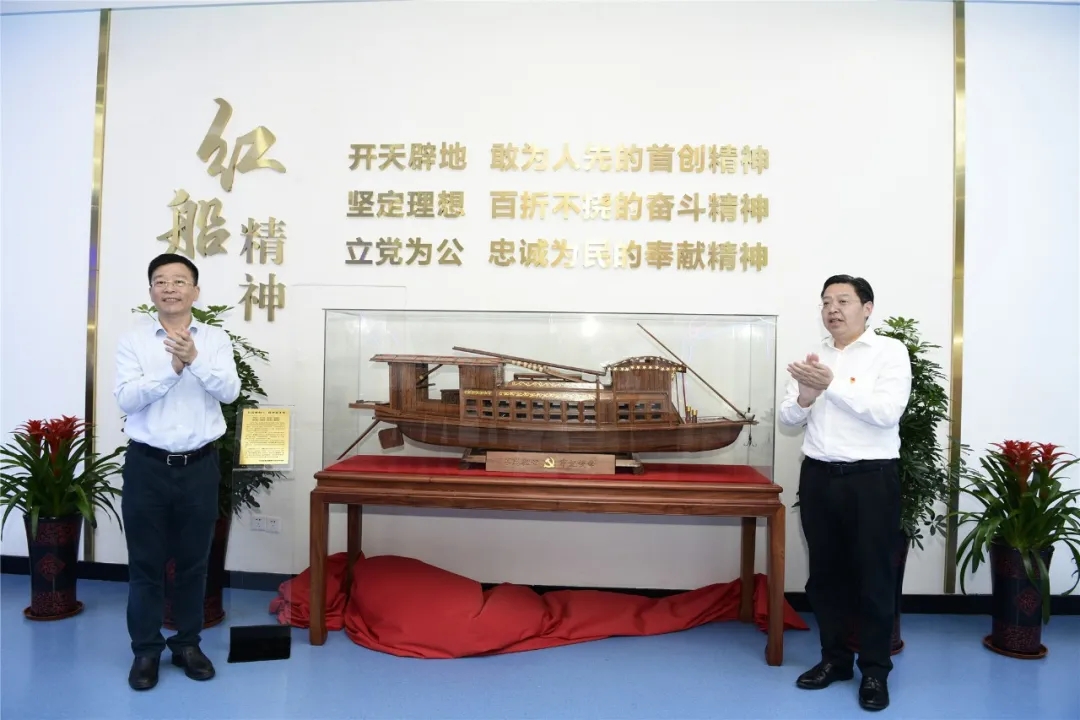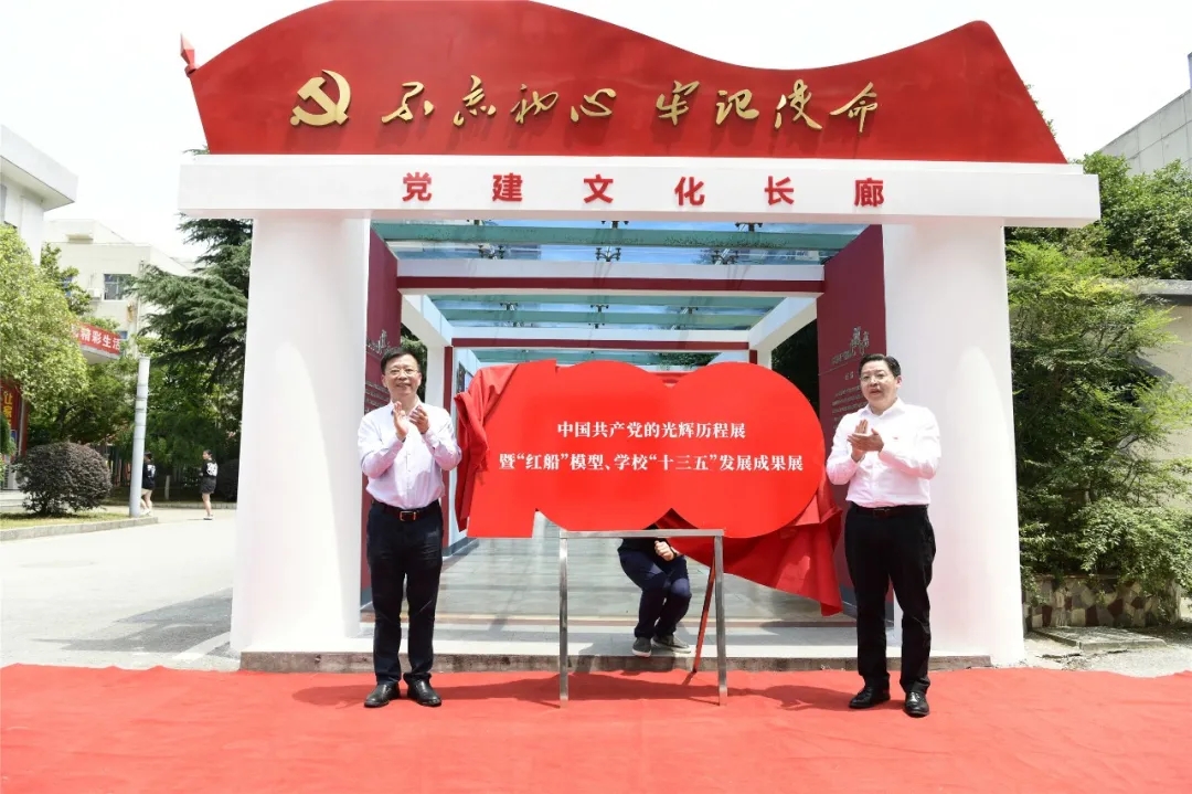 在全體領(lǐng)導和交校師生代表的見證下,金凌副廳長與李虎書記一起為黨的光輝歷程展、“紅船”模型、“十三五”發(fā)展成果展揭牌。