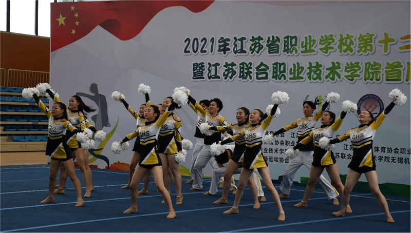 2021年江蘇省職業(yè)學(xué)校第十二屆啦啦操比賽暨江蘇聯(lián)合職業(yè)技術(shù)學(xué)院首屆啦啦操比賽于6月11-12日在江蘇省無(wú)錫市成功舉辦。本次比賽由江蘇省學(xué)生體育協(xié)會(huì)和江蘇聯(lián)合職業(yè)技術(shù)學(xué)院共同主辦,江蘇聯(lián)合職業(yè)技術(shù)學(xué)院無(wú)錫交通分院和無(wú)錫機(jī)電分院協(xié)力承辦,比賽得到了江蘇省啦啦操運(yùn)動(dòng)協(xié)會(huì)的鼎力支持,省內(nèi)共42所職業(yè)學(xué)校43個(gè)代表隊(duì)共880余名運(yùn)動(dòng)員參與2個(gè)組別、6個(gè)單項(xiàng)的角逐。