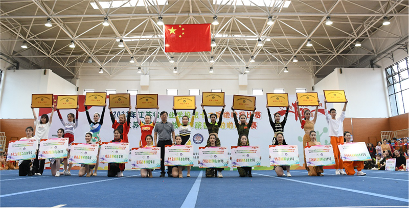 本屆啦啦操比賽既展示了整齊劃一的花球和街舞示范套路,更呈現(xiàn)了“青春心向黨”創(chuàng)意編排,近900名運(yùn)動(dòng)員逐隊(duì)展示、揮灑青春無(wú)畏、逐夢(mèng)揚(yáng)威的汗水。開(kāi)幕式精彩紛呈、亮點(diǎn)頻出,四支冠軍隊(duì)伍的運(yùn)動(dòng)員們?cè)僖淮斡们啻貉笠绲男θ?、整齊劃一的步伐、渾然一體的表演完美呈現(xiàn)了當(dāng)代職業(yè)學(xué)校學(xué)生的風(fēng)貌;近350名運(yùn)動(dòng)員代表同場(chǎng)跳動(dòng),用青春的力量獻(xiàn)禮中國(guó)共產(chǎn)黨篳路藍(lán)縷、砥礪奮進(jìn)的百年歷程。兩天的比賽,節(jié)湊緊湊,安排合理,井然有序,成績(jī)喜人,賽場(chǎng)上的每一位運(yùn)動(dòng)員都積極拼搏,賽場(chǎng)邊加油聲此起彼伏。最終南京市玄武中等專(zhuān)業(yè)學(xué)校獲得中職組團(tuán)體總分第一名,運(yùn)河高等師范學(xué)校(江蘇聯(lián)合職業(yè)技術(shù)學(xué)院運(yùn)河高等師范學(xué)校辦學(xué)點(diǎn))獲得高職組團(tuán)體總分第一名。