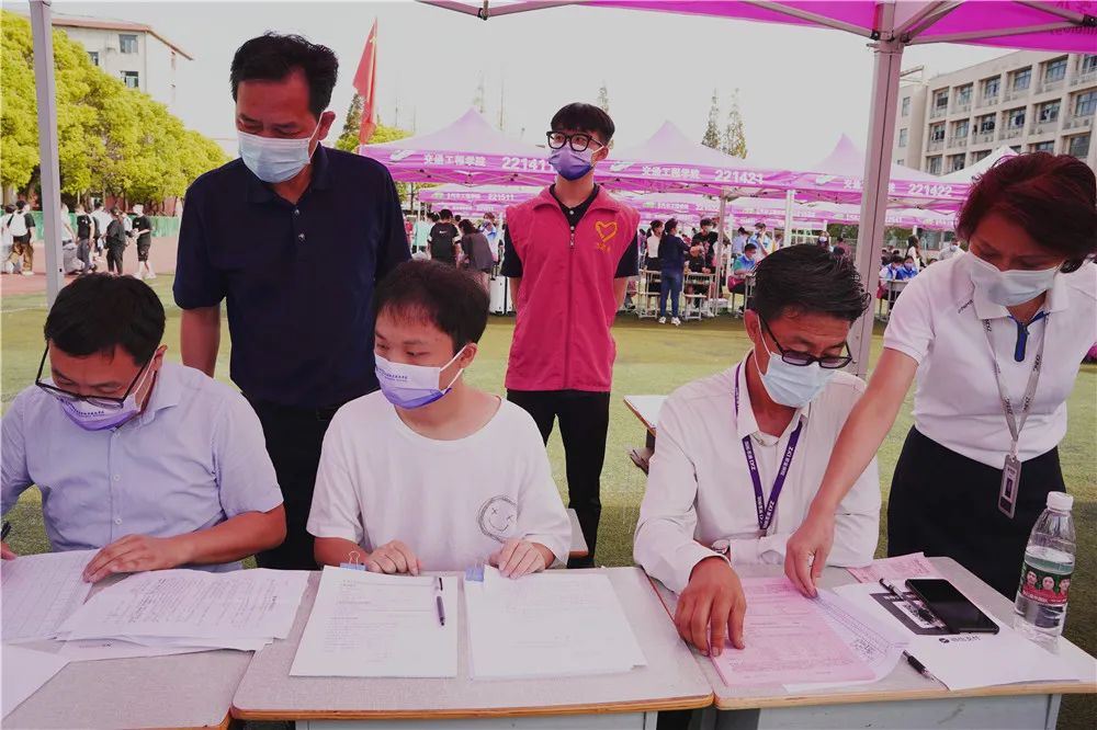 報到現(xiàn)場,學校黨員先鋒隊的教師細致核驗新生身份與健康信息。熱情洋溢的志愿者們早已對新同學翹首以盼,在校門口幫忙搬運行李,在校園指引路線,在宿舍區(qū)幫忙整理,為新同學獻上來自學長學姐們的第一份暖意。各職能部門早早做好準備,為新同學們的生活學習提供有力保障,每一處細節(jié)都傳遞著無微不至的關(guān)懷,幫助新生快速融入校園生活。各學院也做好了迎新工作安排,大家互幫互助,報到工作有條不紊地展開。