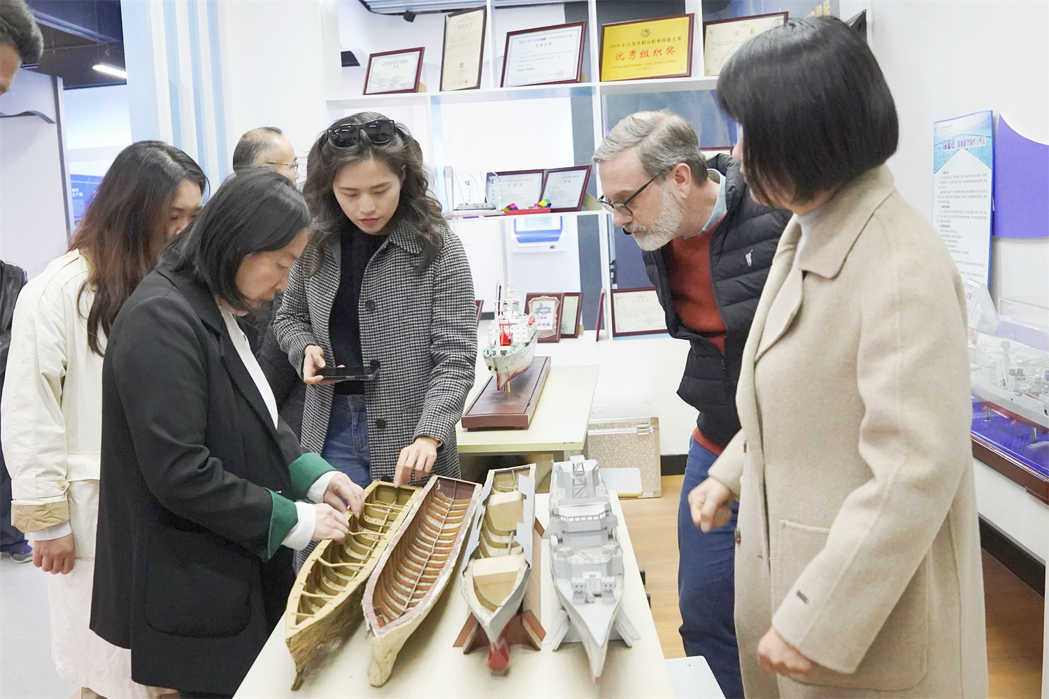陶校長(zhǎng)一行參觀了學(xué)校船文化中心,了解船模設(shè)計(jì)與制作等方面的經(jīng)驗(yàn)與做法,沉浸式學(xué)習(xí)了學(xué)校舟船知識(shí)、船舶建造技術(shù)、水上安全知識(shí)等,表達(dá)了合作的美好愿望與協(xié)同發(fā)展的信心。