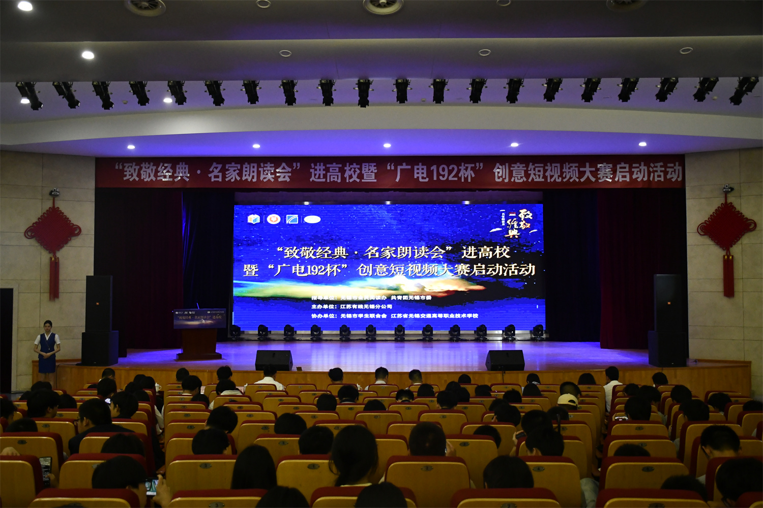 6月5日下午,一場別開生面的文化盛宴在學(xué)校大禮堂拉開帷幕。由江蘇有線無錫分公司主辦,無錫市學(xué)生聯(lián)合會、江蘇省無錫交通高等職業(yè)技術(shù)學(xué)校聯(lián)合承辦的“致敬經(jīng)典·名家朗讀會”進(jìn)高校暨“廣電192杯”創(chuàng)意短視頻大賽啟動活動在此成功舉辦。無錫市委宣傳部出版印刷發(fā)行處副處長馮健,共青團(tuán)無錫市委學(xué)少部副部長王裔,江蘇有線無錫分公司黨委委員、副總經(jīng)理趙曉光,校黨委委員、副校長耿興華、王玨及在錫高校領(lǐng)導(dǎo)代表、江蘇有線無錫分公司代表、我校師生代表600余人共同參加了本次活動。