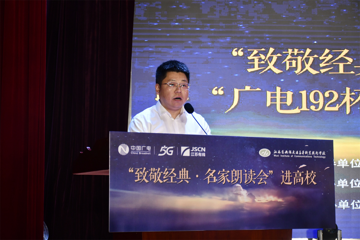 朗讀會伊始,學(xué)校黨委委員、副校長王玨致歡迎辭,他希望通過此次活動,促進(jìn)校園文化繁榮發(fā)展,學(xué)校將進(jìn)一步落實(shí)立德樹人根本任務(wù),讓豐富的校園文化哺育交校學(xué)子。江蘇有線無錫分公司趙曉光副總經(jīng)理在講話中強(qiáng)調(diào)了經(jīng)典文化與新媒體融合的重要性,并表示江蘇有線將一如既往地支持文化事業(yè)的發(fā)展,為公眾提供更多優(yōu)質(zhì)的文化產(chǎn)品和服務(wù)。
