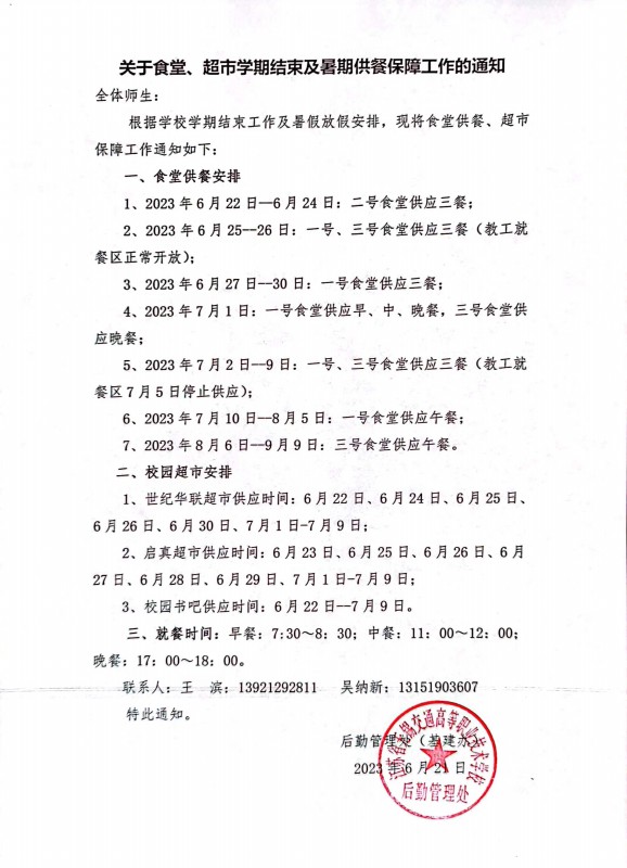 食堂、超市學(xué)期結(jié)束及暑期供餐保障工作的安排