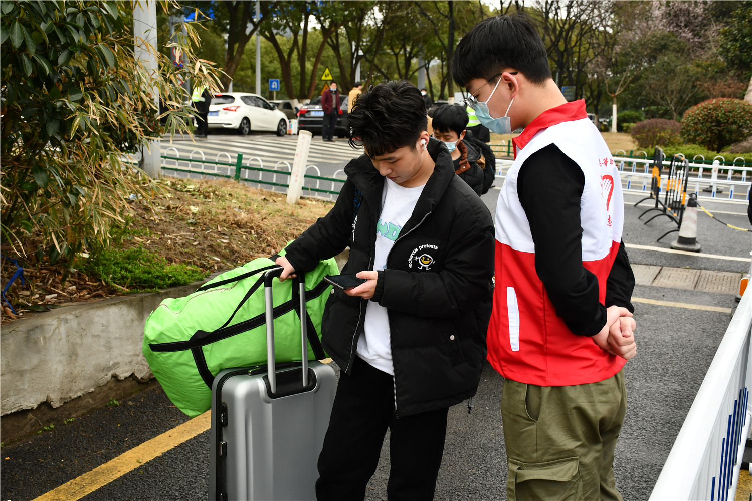 學(xué)校堅(jiān)持把師生的生命安全和身體健康放在首位。為保障此次返校報(bào)到工作的順利進(jìn)行,嚴(yán)格把好疫情防控關(guān)。校門(mén)口處,返校學(xué)生佩戴口罩,配合學(xué)校工作人員有序查驗(yàn)健康碼、核對(duì)身份信息、監(jiān)測(cè)體溫,核對(duì)與檢測(cè)無(wú)誤后進(jìn)入校園,在教職工及學(xué)生志愿者的幫助和引導(dǎo)下有序進(jìn)入校園。