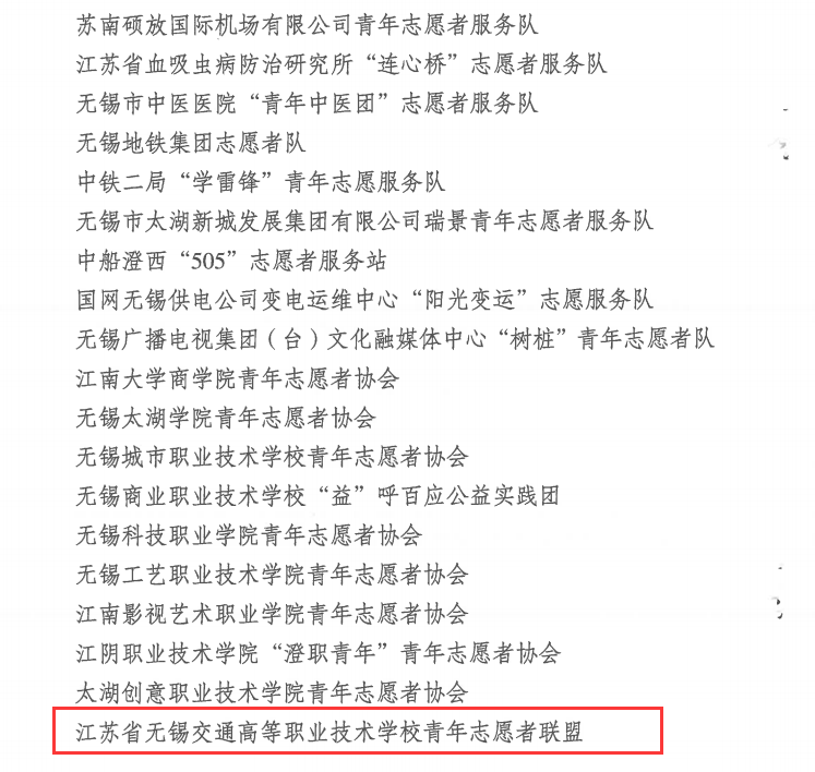 為激勵(lì)廣大青年弘揚(yáng)“奉獻(xiàn)、友愛(ài)、互助、進(jìn)步”的志愿精神,動(dòng)員和凝聚更多青年服務(wù)社會(huì)、奉獻(xiàn)愛(ài)心、傳承文明、不斷將共青團(tuán)改革推向深入。共青團(tuán)無(wú)錫市委員會(huì)、無(wú)錫市青年志愿者協(xié)會(huì)發(fā)布《關(guān)于公布2019-2020年度無(wú)錫市優(yōu)秀青年志愿者、志愿服務(wù)項(xiàng)目、組織、事業(yè)貢獻(xiàn)獎(jiǎng)的通報(bào)》文件。