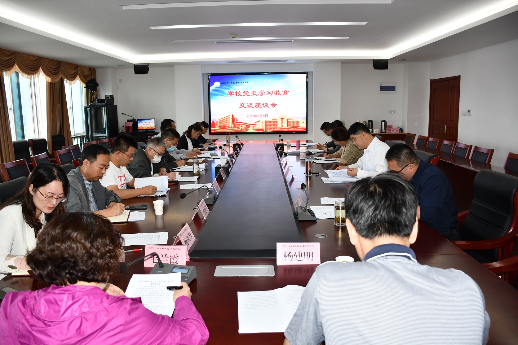 5月8日,學(xué)校召開(kāi)黨史學(xué)習(xí)教育交流座談會(huì),黨委副書(shū)記、紀(jì)委書(shū)記朱雨蘭、黨史學(xué)習(xí)教育領(lǐng)導(dǎo)小組辦公室各組組長(zhǎng)以及全體黨總支(直屬黨支部)負(fù)責(zé)人等20余人出席本次會(huì)議,會(huì)議由黨委委員、副校長(zhǎng)邢勇主持。