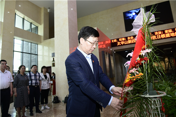 活動中,一行人參觀了太華山新四軍和蘇南抗日根據(jù)地紀念館,接受黨史學(xué)習(xí)教育。金凌副廳長向烈士敬獻花籃。全體人員參觀了新四軍蘇南抗日斗爭歷史陳列館、新四軍將帥館、新四軍文化建設(shè)史實館等館區(qū)。順著展館的參觀路線,沿著新四軍全體將士浴血奮戰(zhàn)的革命征程,大家仿佛置身于血與火的戰(zhàn)爭年代,通過一幅幅圖片、一段段文字、一件件文物,重溫我黨我軍的光榮歷史和艱辛歷程,緬懷老一輩無產(chǎn)階級革命家的豐功偉績,接受愛國主義、革命傳統(tǒng)教育的洗禮。