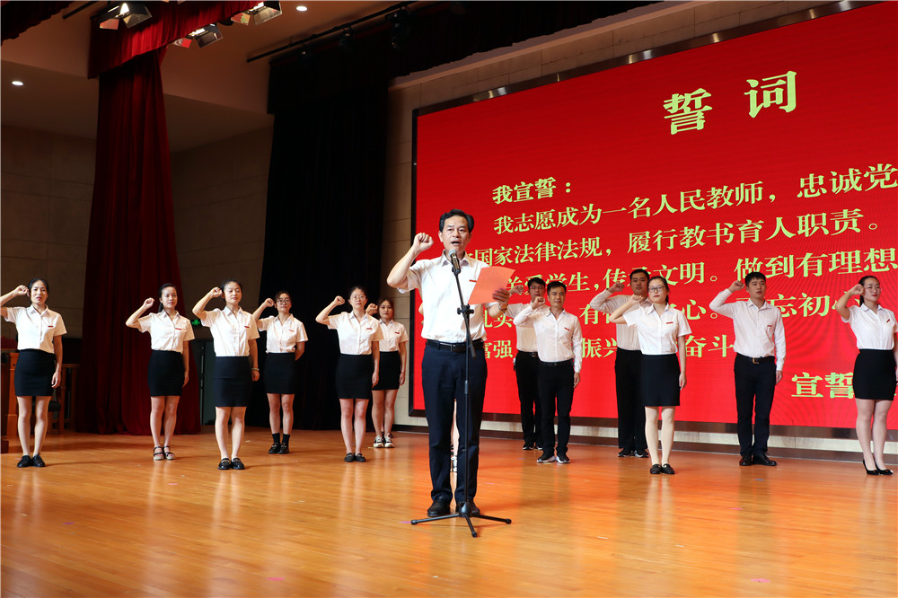 會(huì)上,校領(lǐng)導(dǎo)對(duì)“最美教師”、文明教職工、“最美家庭”進(jìn)行了表彰;向在崗位上辛勤耕耘30年的教師頒發(fā)30年教齡證書?,F(xiàn)場(chǎng)舉行了新教師入職儀式;觀摩了省教學(xué)大賽一等獎(jiǎng)獲獎(jiǎng)團(tuán)隊(duì)的現(xiàn)場(chǎng)展示;師生代表做了交流發(fā)言,教師代表宣讀“學(xué)先進(jìn)、樹(shù)形象、比奉獻(xiàn)”倡議書,充分展現(xiàn)了新時(shí)代學(xué)校教師群體的形象。