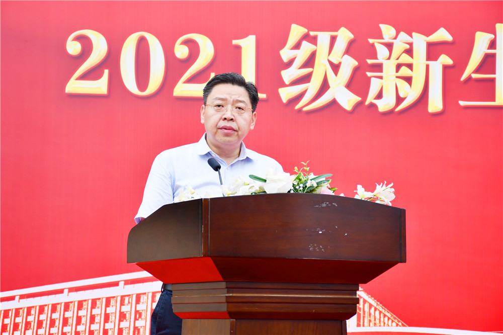 在2021級(jí)新生開(kāi)學(xué)典禮暨入學(xué)教育啟動(dòng)儀式上,教師、老生、新生代表分別作交流發(fā)言。