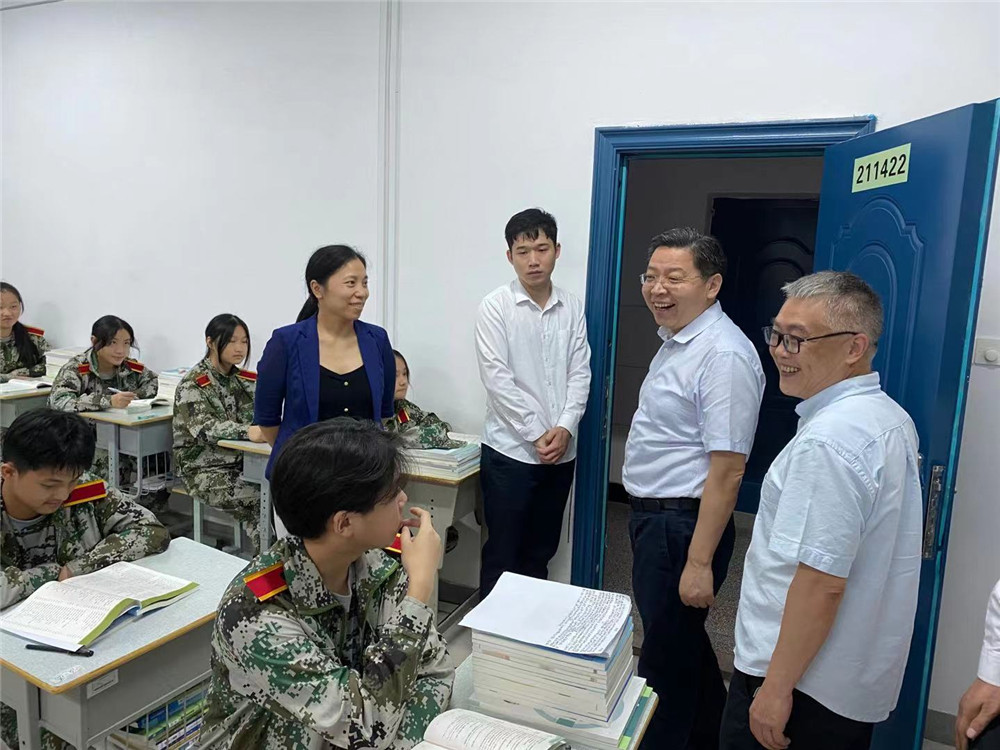 隨后,李書記在學院領導、班主任的陪同下,檢查學院教學樓準備工作,來到新生班級,看望新同學,同學們對李書記的到來表示熱烈歡迎,李書記對同學們表達了誠摯的問候,與同學們進行了親切的交流,詢問了各位同學來到學校后生活、學習以及軍訓等情況,勉勵同學們要樹立遠大理想,錘煉品德修為,練就過硬本領,以嶄新的姿態(tài)迎接新的挑戰(zhàn),追逐最初的夢想,不辜負自己、家長和國家,實現自己的夢想,在軍訓中服從命令,聽從指揮,精誠團結,練出本領,訓出風采,乘風破浪,不斷成長。