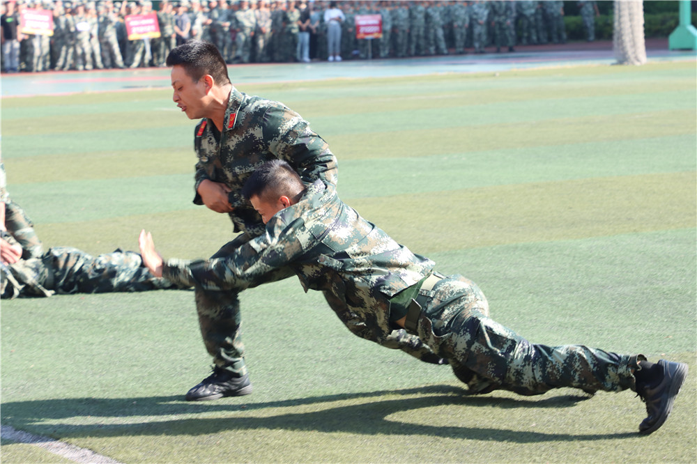 活動中,學生代表進行了擒敵拳表演,教官進行了擒敵術(shù)表演,所有班級的學生進行了分列式表演,充分展示了各方陣斗志昂揚的精神風貌,贏得了現(xiàn)場觀眾的陣陣掌聲。