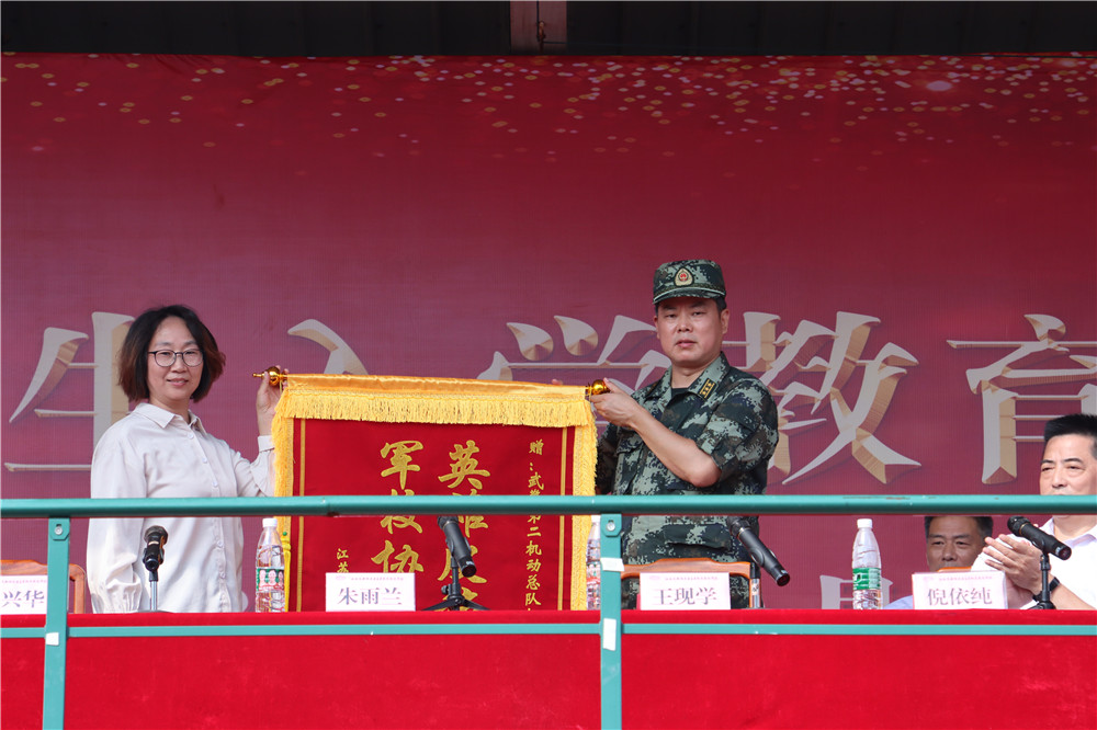 黨委副書記朱雨蘭對承訓部隊的大力支持表示感謝,向承訓部隊贈送了印有“英雄皮旅展英魂 軍校協(xié)同育棟梁”的錦旗。她充分肯定了2021級新生的入學教育成果,并指出,同學們展示出了嚴明的紀律性和良好的團隊意識,亮出了入學以來的第一張漂亮的成績單,完成了大學第一課。對于同學們?nèi)绾巫吆们啻旱谝徊?,扣好步入無錫交校的第一??圩樱鞎浱岢隽怂狞c希望,一是懷揣夢想,志存高遠。二是修身立德,勤于自省。三是精技強能,提高本領。四是強身健體,打牢基礎。她還希望同學們能夠發(fā)揚老黃牛精神,“勤”字當頭,“不待揚鞭自奮蹄”,砥礪筑夢,銘記責任,把青春寫在學校、寫在無錫、寫在祖國的大地上。