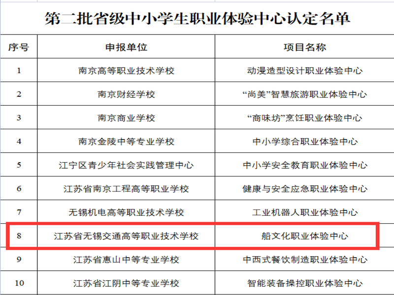 近日,江蘇省教育廳發(fā)布《省教育廳關(guān)于公布第二批省級中小學(xué)生職業(yè)體驗中心認(rèn)定名單的通知》(蘇教職函〔2021〕38號),學(xué)?!按幕殬I(yè)體驗中心”獲評省級中小學(xué)生職業(yè)體驗中心。