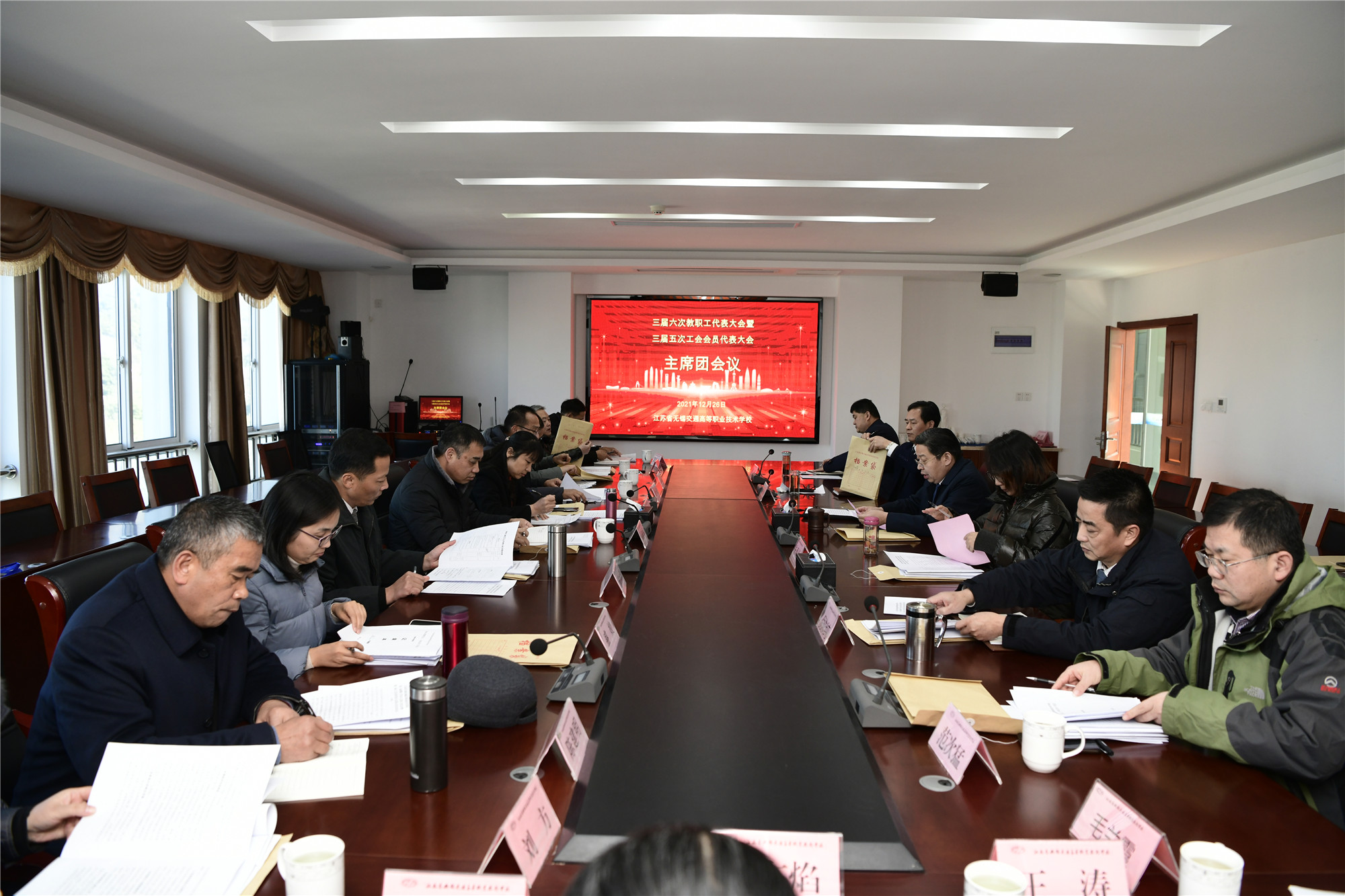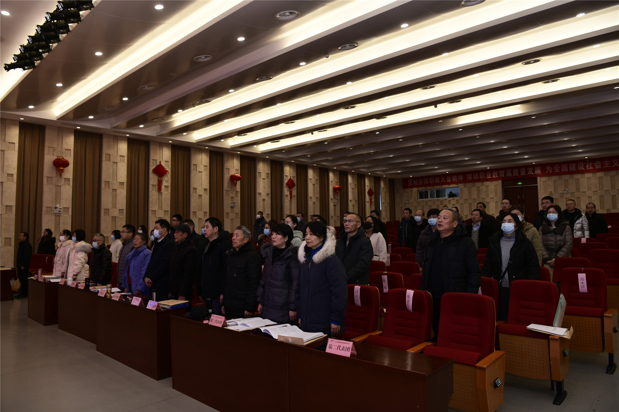 12月26日,學(xué)校在致遠(yuǎn)樓大禮堂召開第三屆教職工代表大會第六次會議暨第三屆工會會員代表大會第五次會議。學(xué)校黨委書記、校長李虎出席會議并作工作報(bào)告。學(xué)校黨委委員、副校長耿興華、倪依純、邢勇,66名正式代表及列席人員、特邀代表參加大會。會議由學(xué)校黨委副書記、五級職員朱雨蘭主持。大會在莊嚴(yán)的國歌聲中開幕。