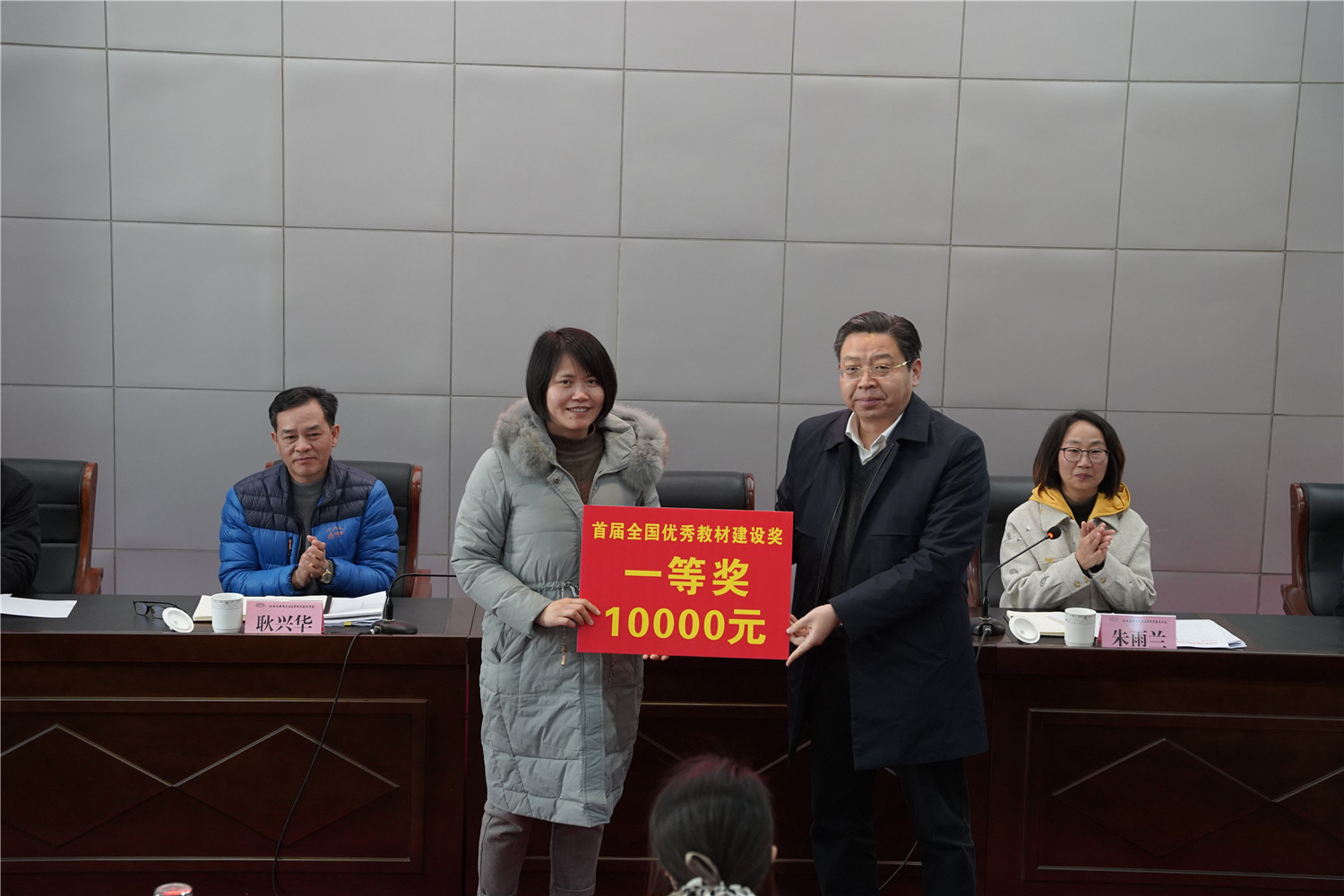 會上,李虎書記為學校獲評首屆全國優(yōu)秀教材一等獎的獲得者吳志亞教授頒發(fā)了首屆全國優(yōu)秀教材突破獎,鼓勵全校教師勇于創(chuàng)新創(chuàng)優(yōu),爭取收獲更多成績突破。