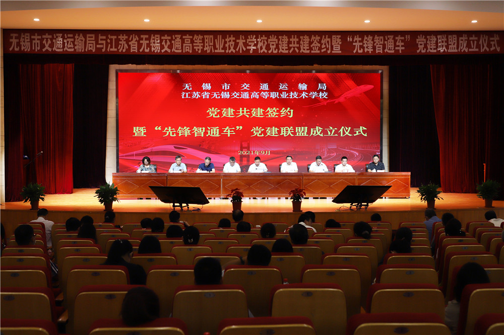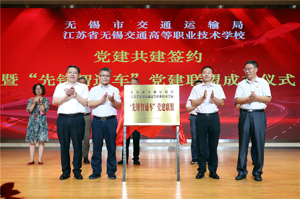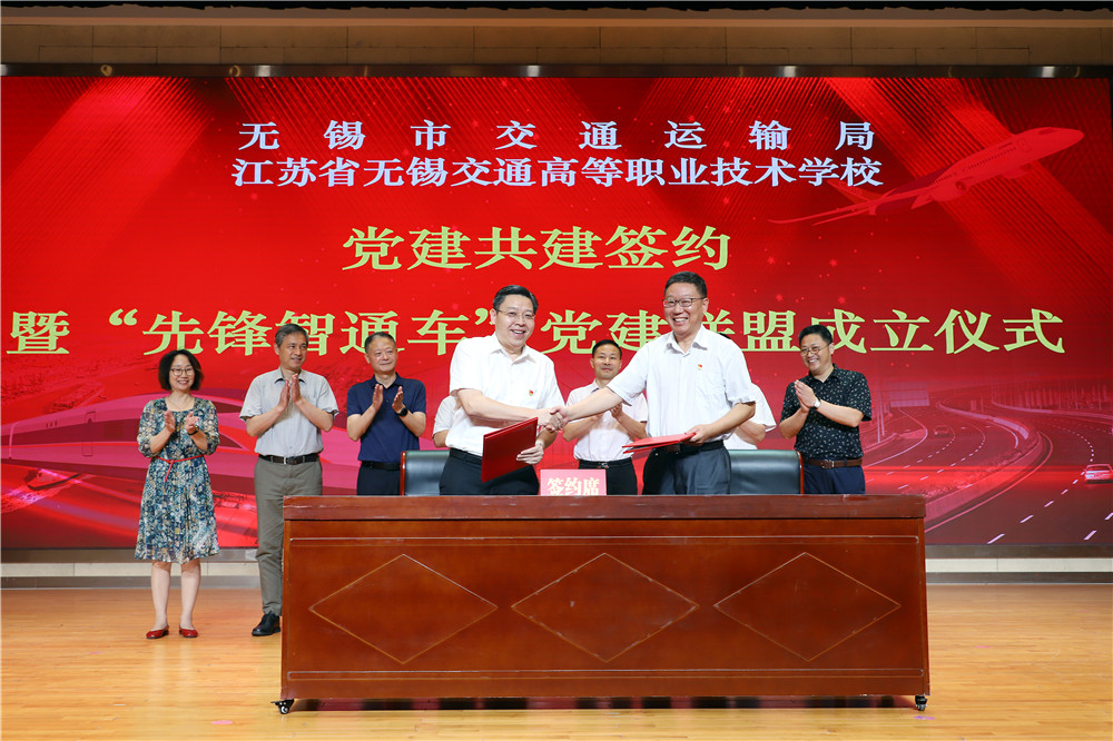 為深入學(xué)習(xí)貫徹習(xí)近平新時代中國特色社會主義思想,深化黨史學(xué)習(xí)教育,落實(shí)“兩在兩同”建新功行動,發(fā)揮黨建引領(lǐng)促發(fā)展作用,9月29日,無錫市交通運(yùn)輸局與無錫交校黨建共建簽約暨“先鋒智通車”黨建聯(lián)盟成立儀式在學(xué)校大禮堂舉行。江蘇省交通運(yùn)輸廳機(jī)關(guān)黨委副處長王子明,無錫市委組織部組織二處處長龔鑫,江蘇省無錫交通高等職業(yè)技術(shù)學(xué)校黨委書記、校長李虎,無錫市交通運(yùn)輸局黨委副書記尹南方,副局長丁滿琪,調(diào)研員宋良棟、周文專,無錫交校副校長倪依純等出席簽約儀式。簽約儀式由學(xué)校黨委副書記朱雨蘭主持。
