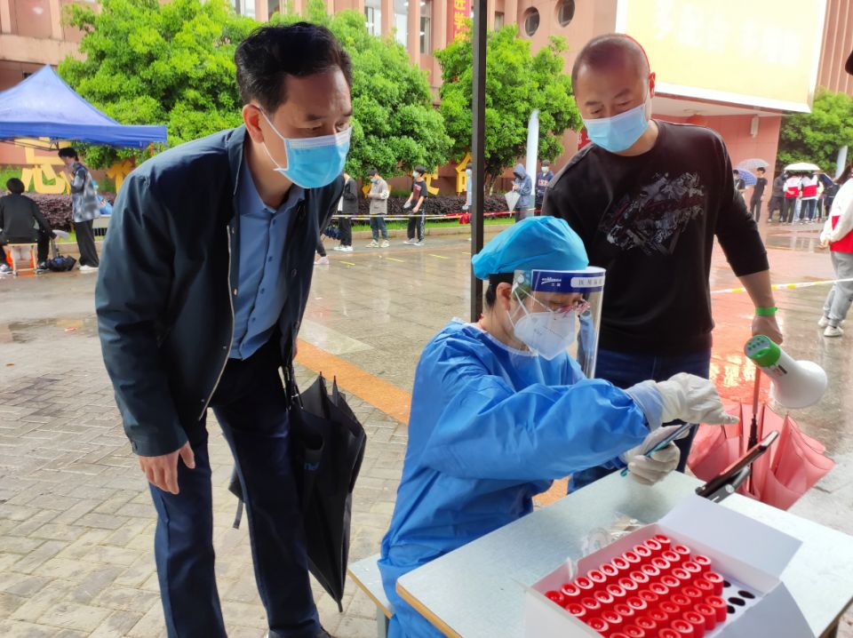 “明天開展全員核酸,請相關(guān)人員做好準備。”每天晚上,學校防控辦提前發(fā)布第二天工作安排,被點名的成員紛紛回復“收到”。他們是一支由學校醫(yī)療辦和教師組成的臨時支援隊伍,是師生在核酸檢測現(xiàn)場的“大白”,負責核酸采樣;他們是核酸檢測現(xiàn)場的“小藍”,負責核酸檢測掃碼、信息登記以及現(xiàn)場人員組織和秩序維護。