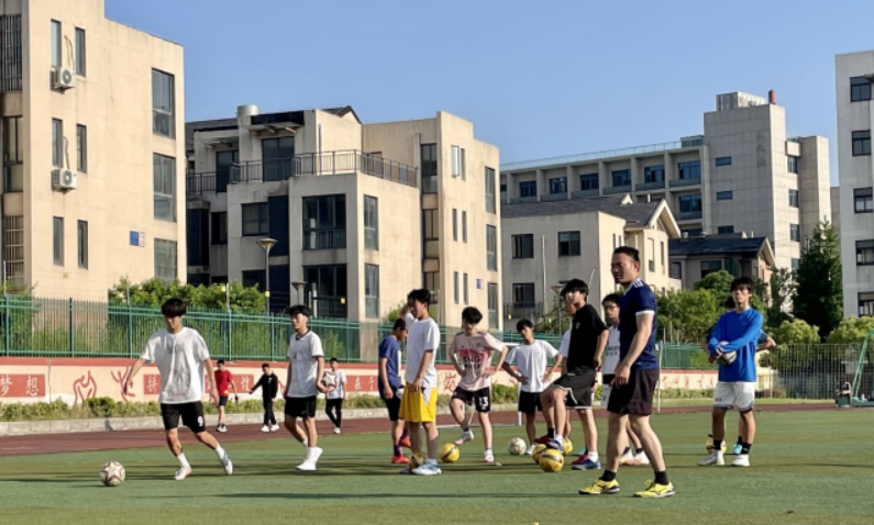 四月的校園,惠山初陽,太湖和風(fēng),生機(jī)盎然。操場上,師生嚴(yán)格落實(shí)疫情防控要求,保持安全距離?;顒?dòng)中,教師講解清晰,示范動(dòng)作準(zhǔn)確,學(xué)生精神抖擻,有序參與學(xué)練,籃球、足球、飛盤、跳繩、廣播操等運(yùn)動(dòng)項(xiàng)目有序推進(jìn)。為進(jìn)一步激發(fā)學(xué)生學(xué)練熱情,體育教師協(xié)力合作,融合網(wǎng)絡(luò)流行的“本草綱目”“龍拳”等熱門音樂,創(chuàng)編學(xué)生喜聞樂見的健身操,運(yùn)動(dòng)的汗水在四月暖陽的映襯下熠熠生輝。