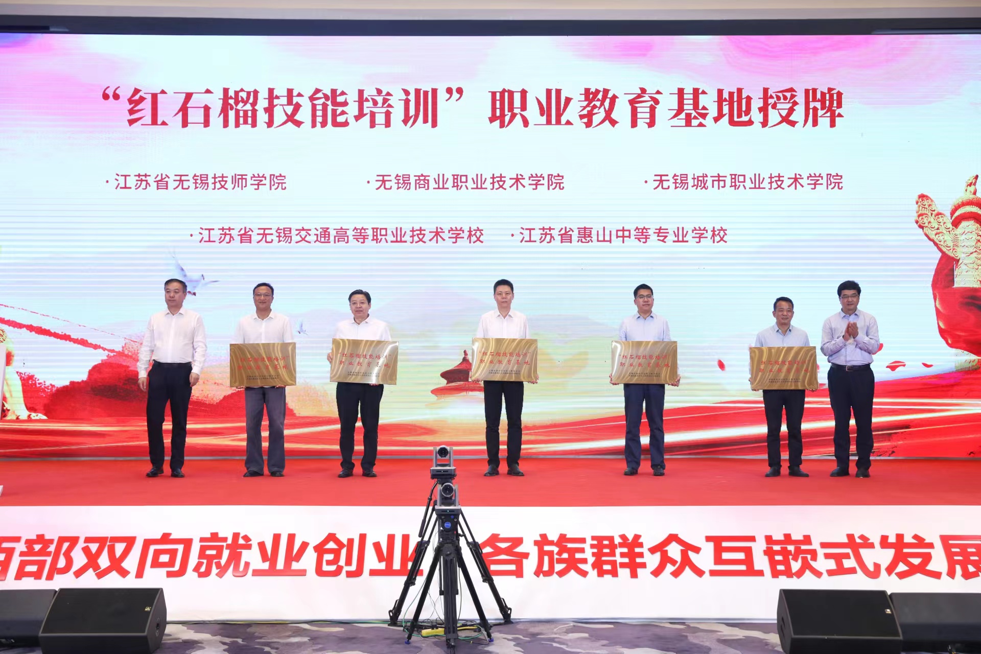 為進(jìn)一步深化民族地區(qū)和東部地區(qū)的互助合作,優(yōu)化多層次、多形式、全方位的合作格局,健全就業(yè)幫扶長(zhǎng)效機(jī)制和穩(wěn)就業(yè)措施,5月26日,江蘇惠山與青海平安、青海樂都、貴州南明、云南元陽、西藏日喀則五省區(qū)聯(lián)合舉辦“紅石榴就業(yè)行動(dòng)”推進(jìn)會(huì)暨東西部勞務(wù)協(xié)作簽約儀式。無錫市委常委、統(tǒng)戰(zhàn)部部長(zhǎng)周常青出席簽約儀式并發(fā)表重要講話。學(xué)校黨委書記、校長(zhǎng)李虎出席“紅石榴就業(yè)行動(dòng)”推進(jìn)會(huì)暨東西部勞務(wù)協(xié)作簽約儀式,并現(xiàn)場(chǎng)接受“紅石榴技能培訓(xùn)”職業(yè)教育基地的授牌。