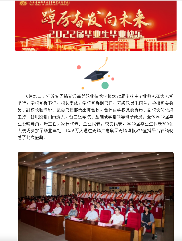 無錫博報:踔厲奮發(fā)向未來:江蘇省無錫交通高等職業(yè)技術(shù)學校舉行2022屆畢業(yè)生畢業(yè)典禮