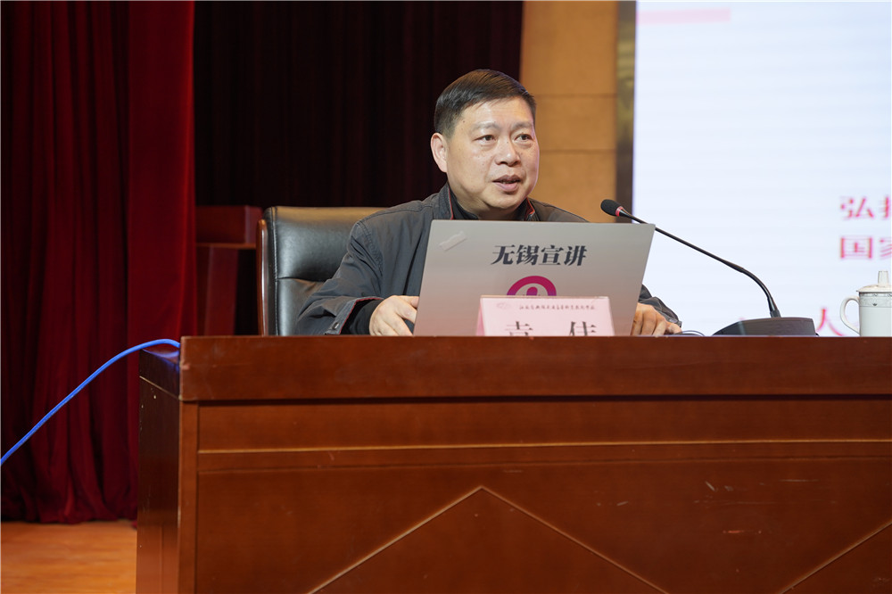 動員會上,學校還邀請了無錫市委講師團副團長袁偉為青年師生作輔導報告。他以《乘風破浪 行穩(wěn)致遠——以中國式現代化全面推進中華民族偉大復興》為題,圍繞大會概況、理論闡釋和總結概括三個方面對黨的二十大報告作了深入系統的解讀與闡釋。授課內容系統全面、內涵豐富、分析透徹、契合實踐,為全體青年師生深刻理解和準確把握黨的二十大精神提供了思路和指導,大家專注聽講,認真記錄,受益匪淺。