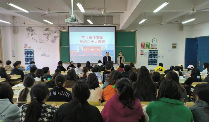馬克思主義學(xué)院高度重視此項(xiàng)工作,充分發(fā)揮學(xué)科優(yōu)勢(shì)和專業(yè)優(yōu)勢(shì),精心打磨宣講課件,以“深入學(xué)習(xí)貫徹黨的二十大精神 不負(fù)韶華 書寫青春奮斗答卷”為主題,以互動(dòng)交流、圖文導(dǎo)讀、視頻融入等方式,帶領(lǐng)師生全面梳理、深刻領(lǐng)悟了黨的二十大精神。