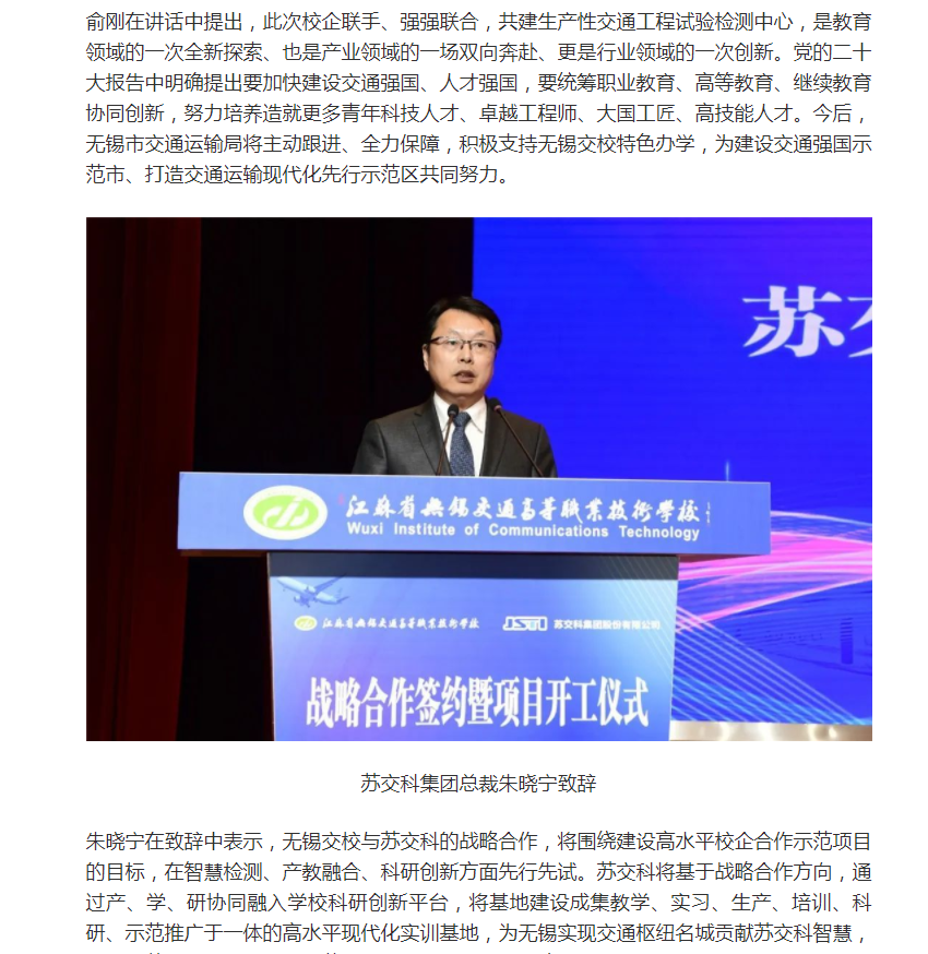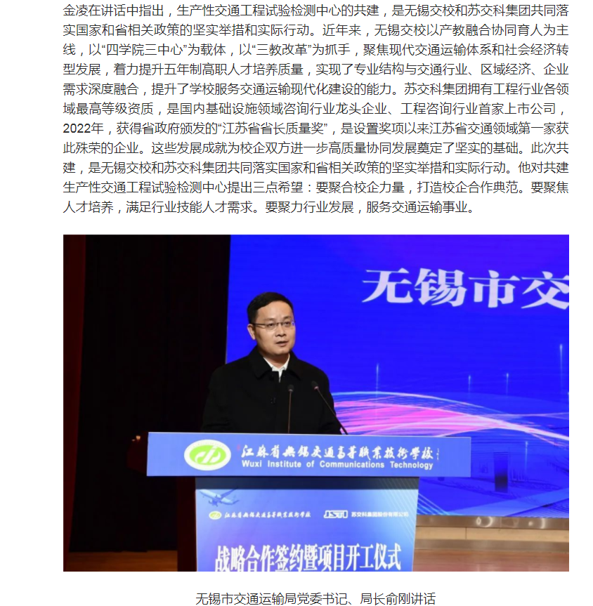 無錫博報(bào):無錫交校與蘇交科集團(tuán)共建生產(chǎn)性交通工程試驗(yàn)檢測中心項(xiàng)目正式啟動(dòng)(視頻版)