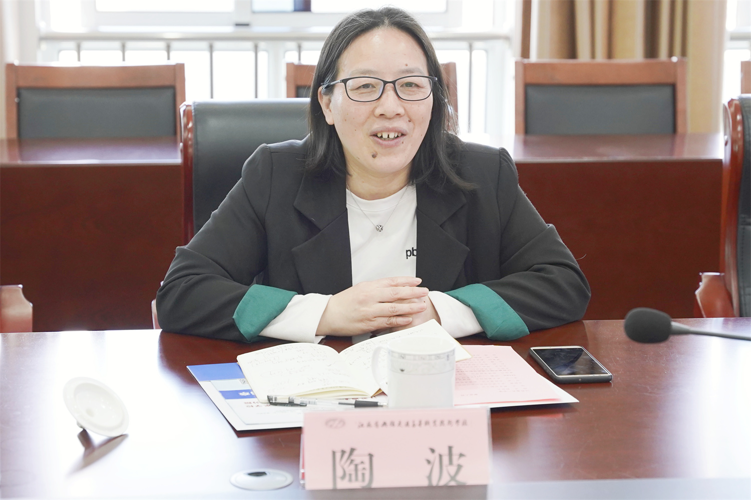 參觀后,雙方在512會議室開展了座談交流。朱雨蘭對陶波一行的到來表示熱烈的歡迎。雙方就船模設計與制作相關實驗室建設、課程設置、教學組織等進行了討論和深入交流,并就資源共享實現優(yōu)勢互補達成共識。