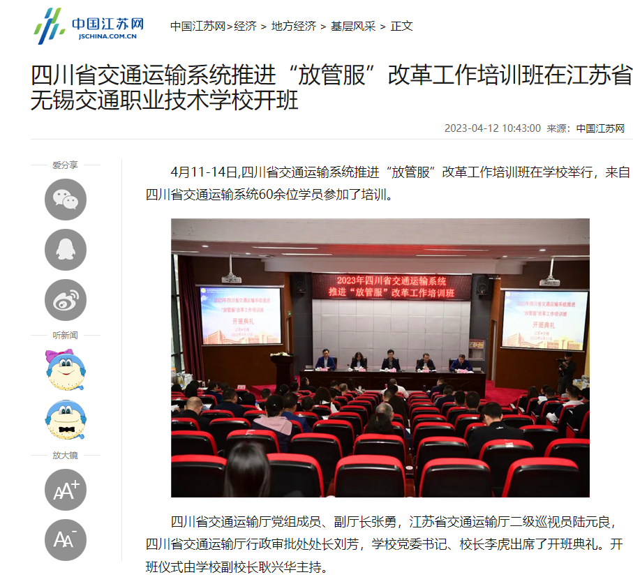 今日頭條:四川省交通運(yùn)輸系統(tǒng)推進(jìn)“放管服”改革工作培訓(xùn)班在江蘇省無(wú)錫交通高等職業(yè)技術(shù)學(xué)校開(kāi)班