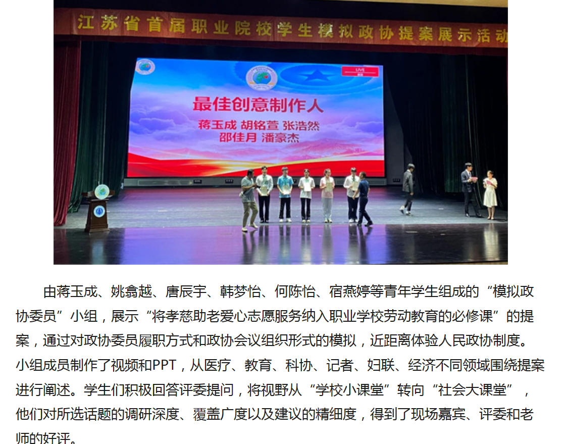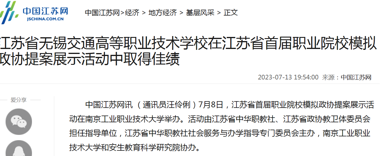 江蘇省無錫交通高等職業(yè)技術(shù)學(xué)校在江蘇省首屆職業(yè)院校模擬政協(xié)提案展示活動中取得佳績_中國江蘇網(wǎng) (jschina.com.cn)