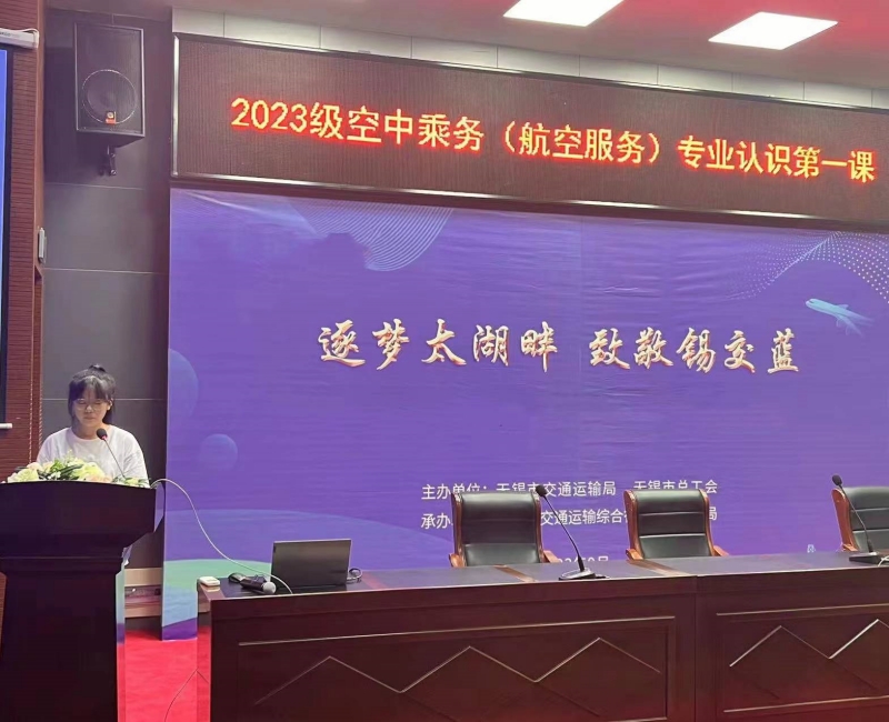 9月12日,學(xué)校船舶工程學(xué)院空中乘務(wù)(航空服務(wù))專業(yè)2023級(jí)新生在學(xué)術(shù)報(bào)告廳舉辦專業(yè)認(rèn)識(shí)第一課宣講活動(dòng)。船舶工程學(xué)院院長吳志亞,航空教研室副主任王赟,專業(yè)課老師及新生班主任出席第一課。