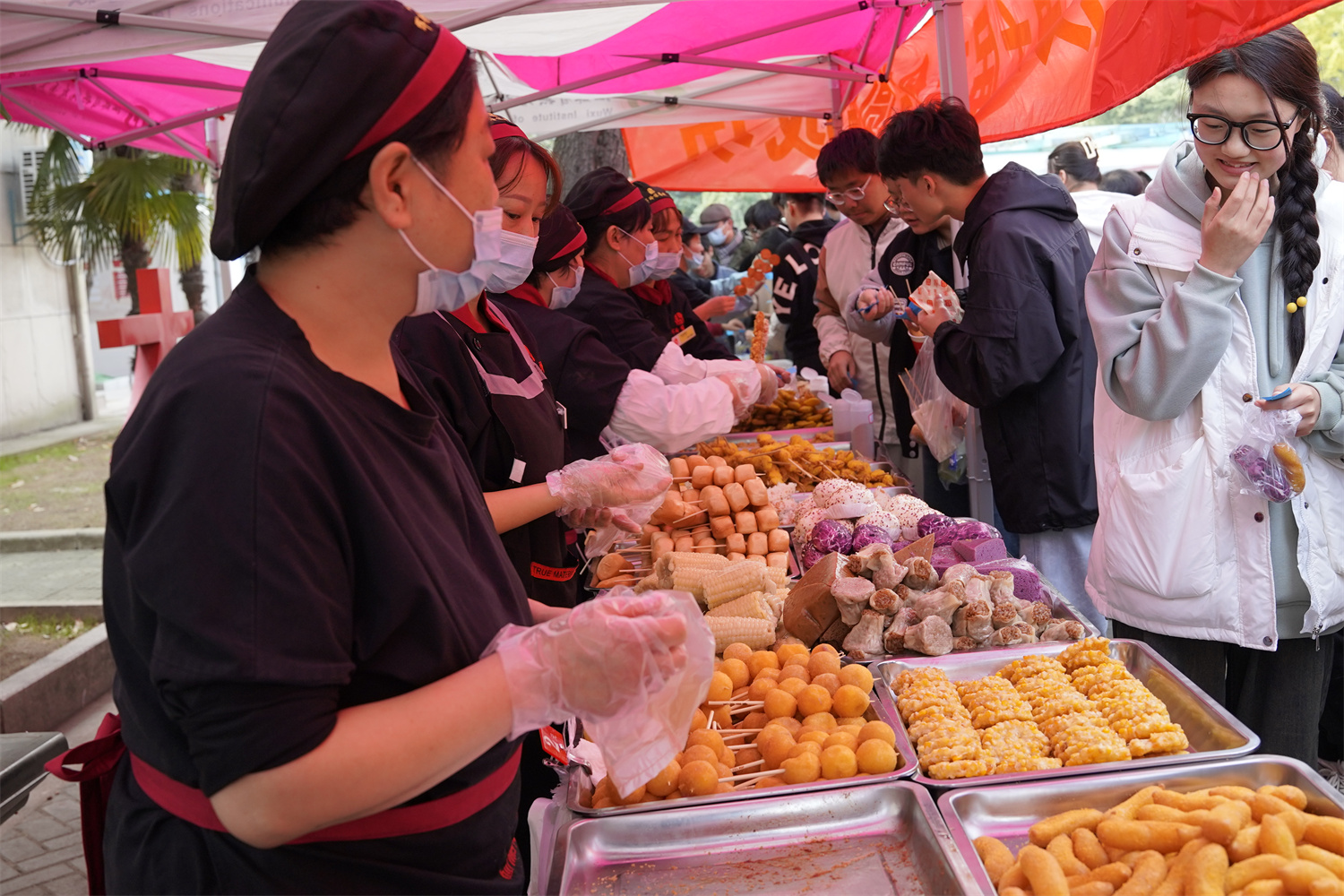 11月22日,由學(xué)校后勤管理處、學(xué)生工作處主辦,北京百靈鳥、蘇州同發(fā)、南京輝玲緣、世紀(jì)華聯(lián)超市、虹盛超市、校園書店協(xié)辦的學(xué)校2023年第七屆美食節(jié)正式開幕。