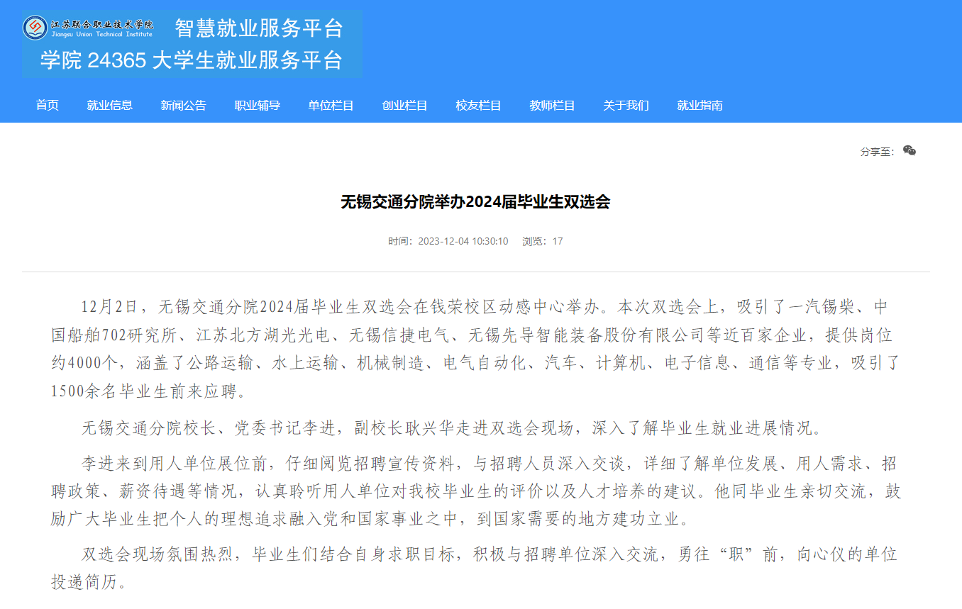 江蘇聯院:無錫交通分院舉辦2024屆畢業(yè)生雙選會