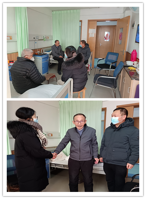 1月24日下午,校工會(huì)蔣治國(guó)老師,學(xué)院副院長(zhǎng)蔣紅梅老師、團(tuán)總支總書記朱沛老師一行,來(lái)到無(wú)錫朗高護(hù)理院探望退休教師束學(xué)進(jìn)和傅淑新。
