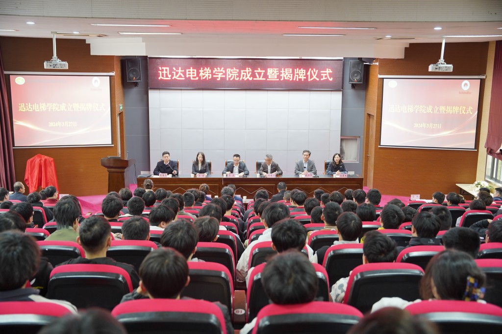 為進(jìn)一步深化產(chǎn)教融合、校企合作,提升學(xué)校辦學(xué)水平,助力智能裝備產(chǎn)業(yè)學(xué)院發(fā)展,促進(jìn)職業(yè)教育高質(zhì)量發(fā)展,3月27日上午,在學(xué)術(shù)報告廳舉行迅達(dá)電梯學(xué)院成立暨揭牌儀式。本次活動得到了迅達(dá)電梯有限公司的大力支持。學(xué)校校長、校黨委書記李進(jìn),副校長耿興華,機(jī)電工程學(xué)院領(lǐng)導(dǎo)班子,以及迅達(dá)電梯蘇滬區(qū)總經(jīng)理徐春劍等出席儀式,迅達(dá)電梯首屆學(xué)生及機(jī)電工程學(xué)院師生代表參與活動,儀式由機(jī)電工程學(xué)院院長夏春榮主持。