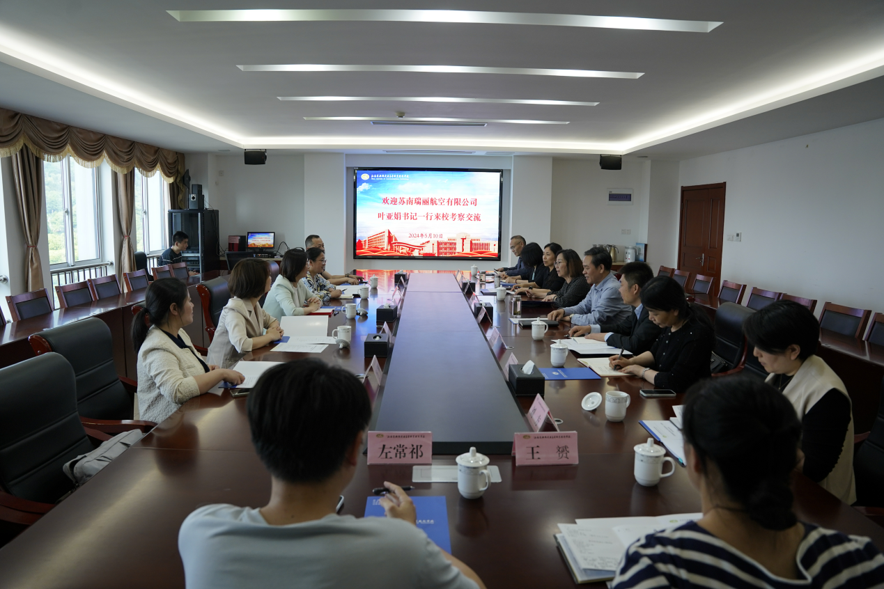 5月10日,蘇南瑞麗航空有限公司黨委書記、董事長葉亞娟一行蒞臨我校,就校企合作、產(chǎn)教融合等議題進(jìn)行了深入的交流洽談。會(huì)議在學(xué)校南校園致遠(yuǎn)樓512會(huì)議室舉行,學(xué)校黨委副書記、五級職員朱雨蘭出席并主持會(huì)議。