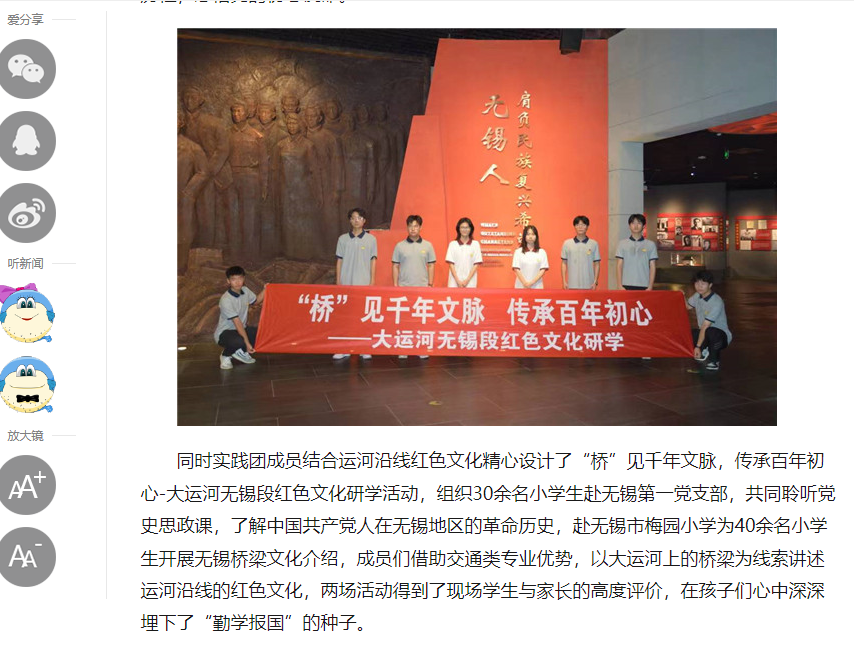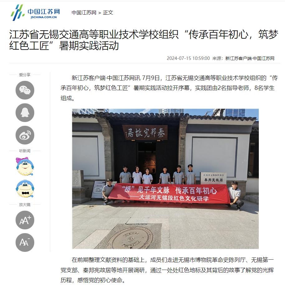 中江網(wǎng):江蘇省無(wú)錫交通高等職業(yè)技術(shù)學(xué)校組織“傳承百年初心,筑夢(mèng)紅色工匠”暑期實(shí)踐活動(dòng)