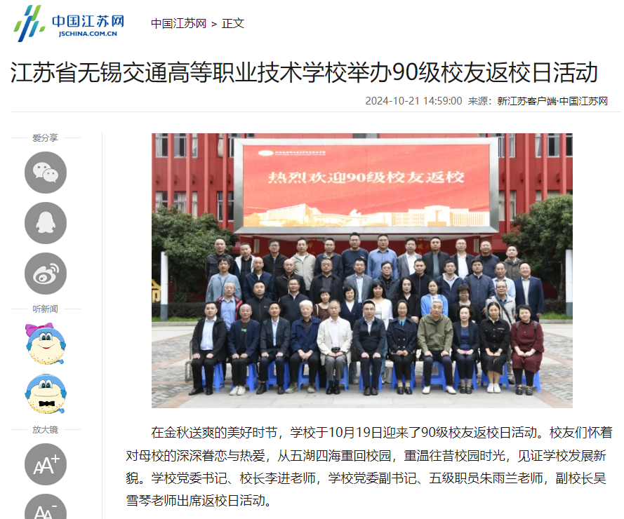 中江網(wǎng):江蘇省無錫交通高等職業(yè)技術(shù)學(xué)校舉辦90級(jí)校友返校日活動(dòng)
