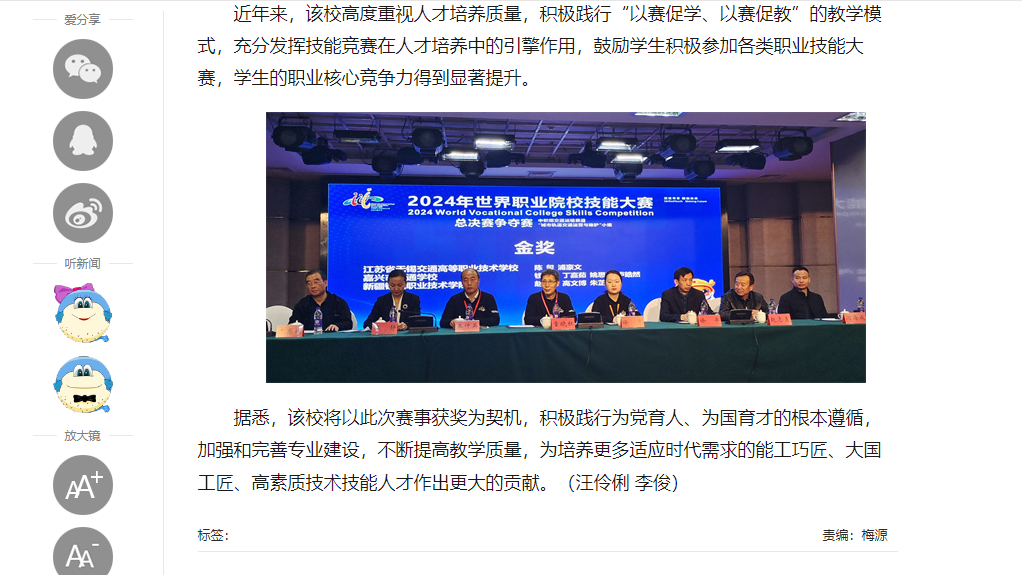 中江網(wǎng):無錫學(xué)生團(tuán)隊(duì)榮獲2024年世界職業(yè)院校技能大賽爭(zhēng)奪賽城軌運(yùn)營(yíng)與維護(hù)賽項(xiàng)金獎(jiǎng)