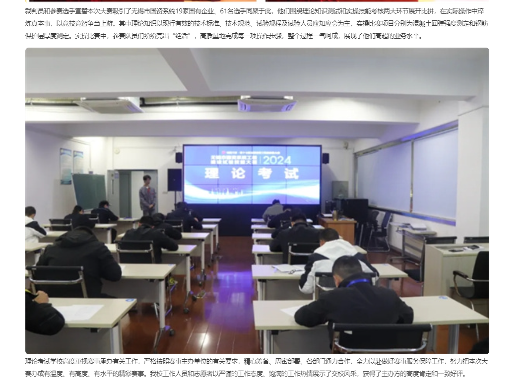 新江蘇:無錫市國資系統(tǒng)工程建設(shè)試驗(yàn)技能大賽在江蘇省無錫交通高等職業(yè)技術(shù)學(xué)校開賽