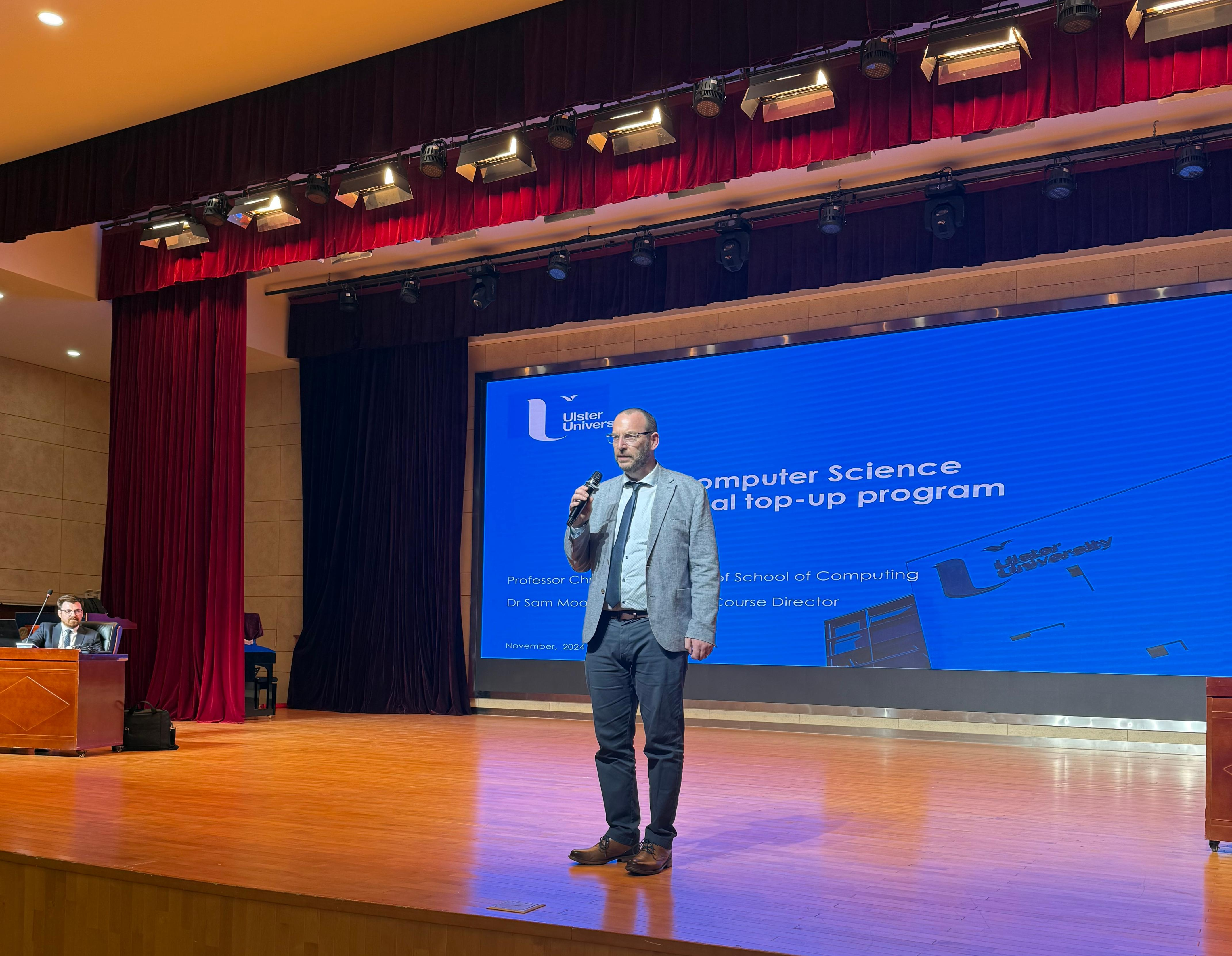 Chris院長表示期待能與我校建立緊密的合作關(guān)系。他表示,奧斯特大學(xué)一直致力于推動全球教育的多元化和國際化,雙方有著共同的教育初心和目標(biāo)。希望依托兩校在中英兩國教育、科研、文化交流等領(lǐng)域的豐富資源,探討開展更加多樣、更加務(wù)實的交流與合作,培養(yǎng)具有國際化視野的精英人才。隨后,Chris Nugent院長一行還專門給部分學(xué)生作了奧斯特大學(xué)基本情況的宣講。