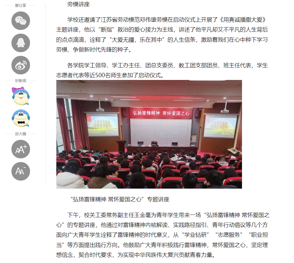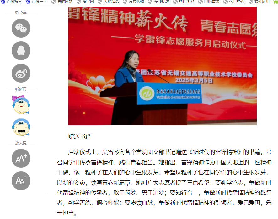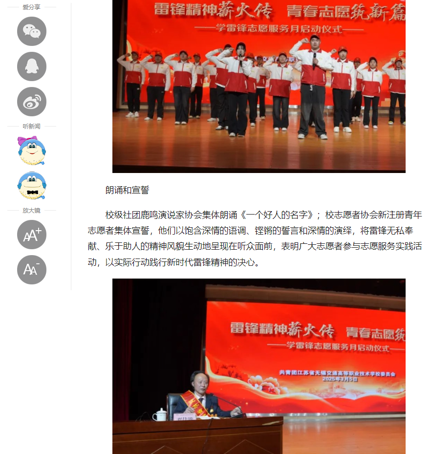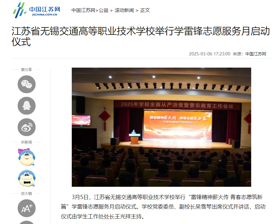 中江網(wǎng):江蘇省無錫交通高等職業(yè)技術(shù)學(xué)校舉行學(xué)雷鋒志愿服務(wù)月啟動儀式