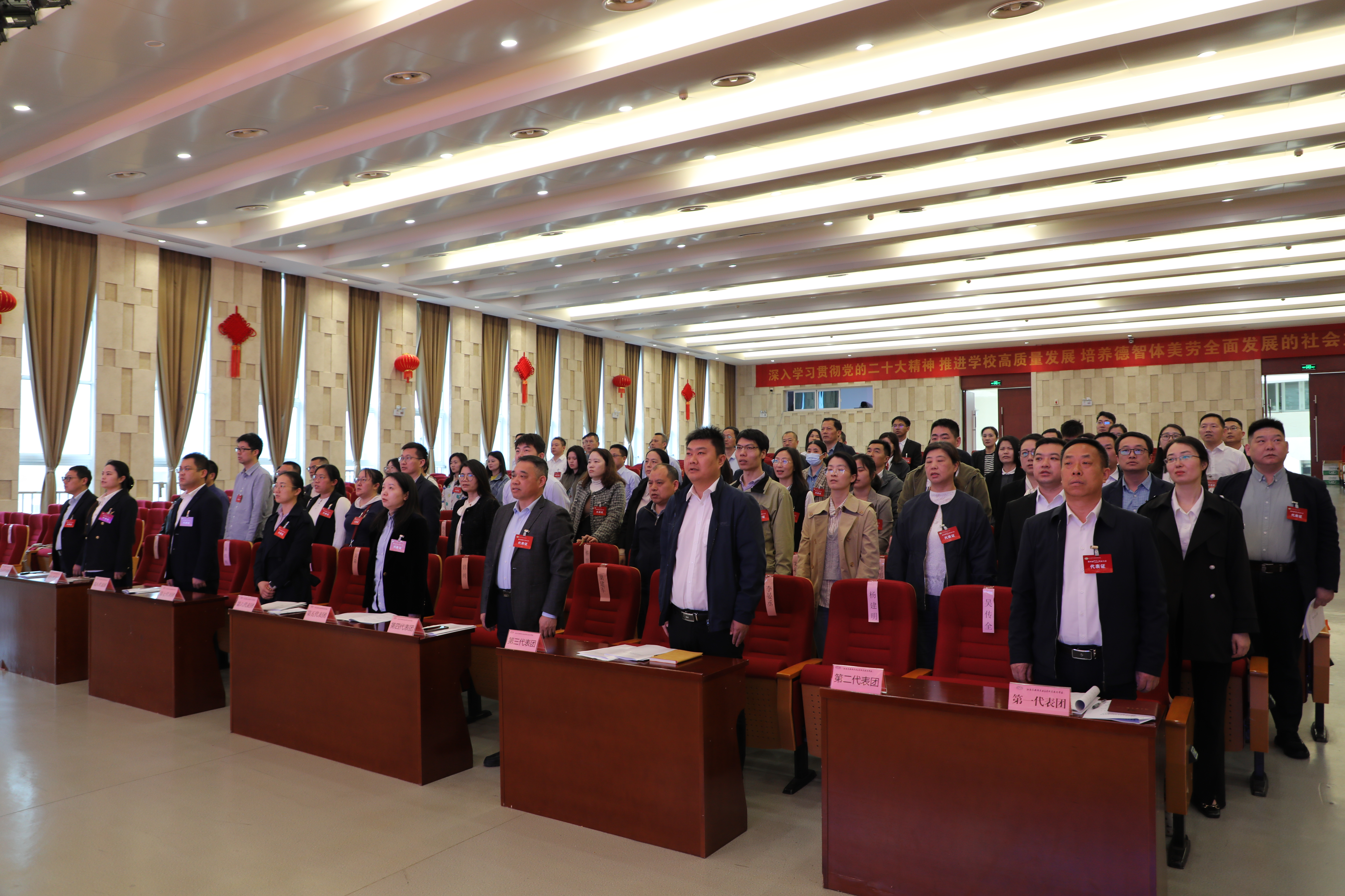 4月12日,學(xué)校第四屆教職工代表大會暨工會會員代表大會第二次會議在大禮堂隆重開幕。學(xué)校領(lǐng)導(dǎo)班子全體成員、教代會與工代會正式代表及列席代表98人齊聚一堂,共商學(xué)校發(fā)展大計。大會在莊嚴的國歌聲中拉開序幕。會議由學(xué)校黨委委員、副校長耿興華主持。