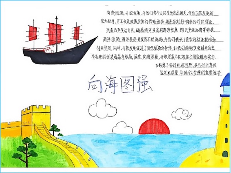 同學(xué)們踴躍參與,圍繞主題創(chuàng)作了豐富多樣的作品。有的通過(guò)攝影與文章,展現(xiàn)我國(guó)海洋經(jīng)濟(jì)的蓬勃發(fā)展;有的以手繪和文字,詮釋“向海圖強(qiáng)”與個(gè)人發(fā)展的緊密聯(lián)系;還有同學(xué)從海洋科技、資源開(kāi)發(fā)等角度,強(qiáng)調(diào)海洋強(qiáng)國(guó)戰(zhàn)略的時(shí)代意義。多幅作品體現(xiàn)了青年一代以專業(yè)為槳、以青春為帆,投身國(guó)家海洋事業(yè)的堅(jiān)定決心。
