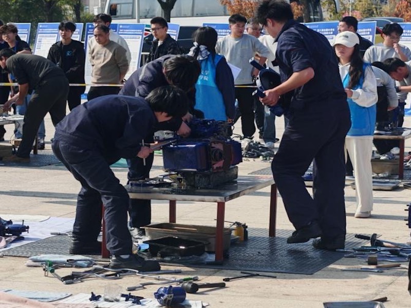 本次大賽主要包括創(chuàng)新作品制作賽、設(shè)計(jì)賽和技能賽三個(gè)賽項(xiàng),共有來(lái)自30多所高等院校200多名參賽選手參加了本次比賽。我校船舶工程學(xué)院組織了兩支隊(duì)伍共6名學(xué)生參加了技能賽賽項(xiàng)。技能賽賽項(xiàng)主要內(nèi)容是規(guī)范拆裝CZ380船用柴油機(jī),并要求選手能正確調(diào)試及啟動(dòng)設(shè)備。本次技能賽賽項(xiàng)中,共有32支隊(duì)伍同場(chǎng)競(jìng)技。比賽現(xiàn)場(chǎng),我校參賽選手嚴(yán)格按照比賽規(guī)程進(jìn)行熟練操作,充分展現(xiàn)了積極向上的良好風(fēng)貌、扎實(shí)的專業(yè)技能和良好的專業(yè)素養(yǎng)。最終,經(jīng)過(guò)激烈的角逐,我校211141班梁奧、孫澤遠(yuǎn)和221131班陸楠同學(xué)組建的隊(duì)伍,以及221131班杜櫟濤、朱健和尹天源同學(xué)組建的隊(duì)伍均獲一等獎(jiǎng)。