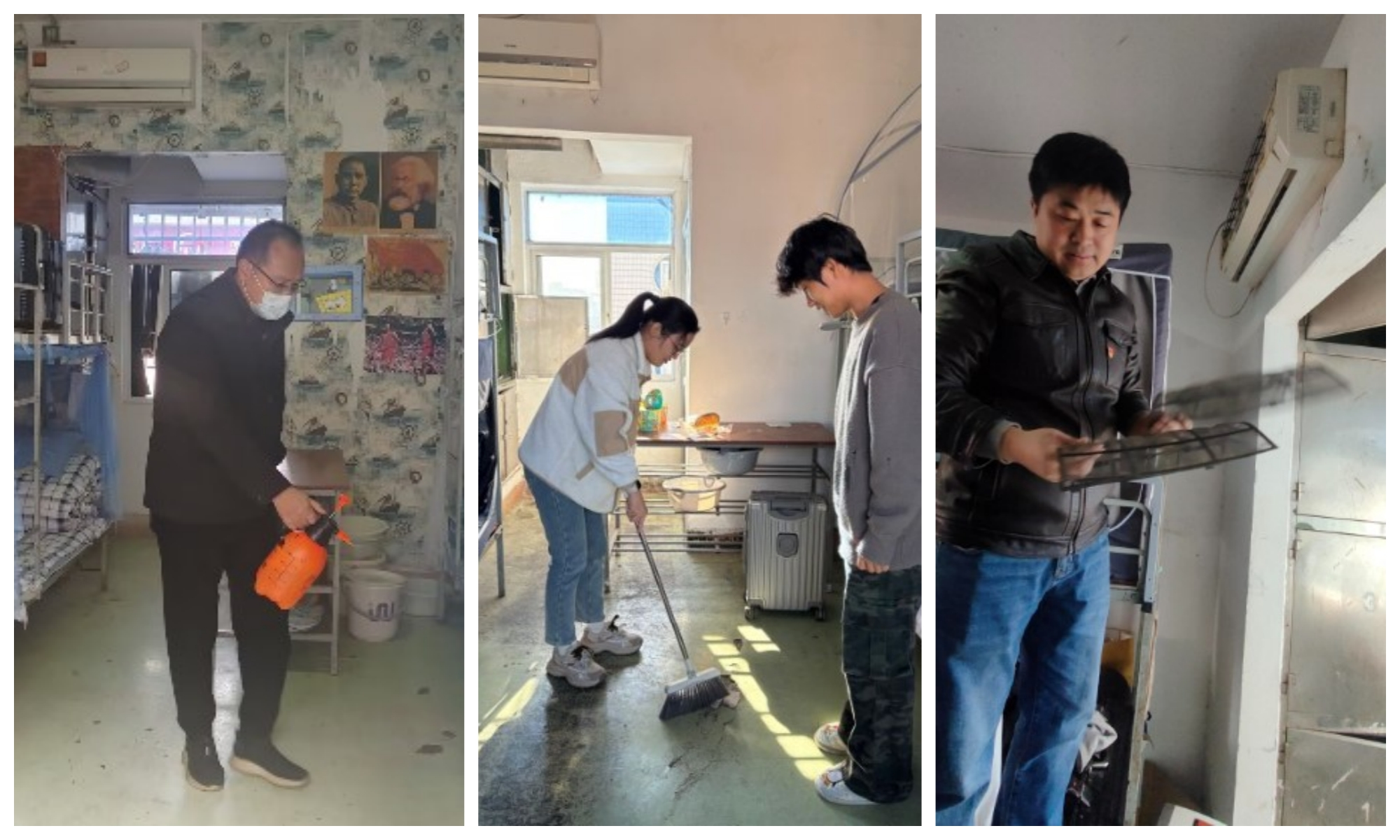 深入學生宿舍,辦實事解難題。 學生宿舍是學生在校日常生活的重要場所,環(huán)境衛(wèi)生與安全問題直接關系到學生的身心健康。數(shù)模教研室黨支部黨員教師利用課余時間,分組分批深入學生宿舍,開展暖心服務。他們手持工具,細心為學生清洗空調濾網(wǎng),擦拭門窗玻璃,協(xié)助學生整理內務,改善住宿環(huán)境。特別是在近期流感高發(fā)時段,黨員教師們還主動攜帶消毒用品,對學生宿舍公共區(qū)域及重點部位進行義務消毒消殺,向學生宣傳普及疾病預防知識,用實際行動筑牢校園健康防線,傳遞關懷溫暖。