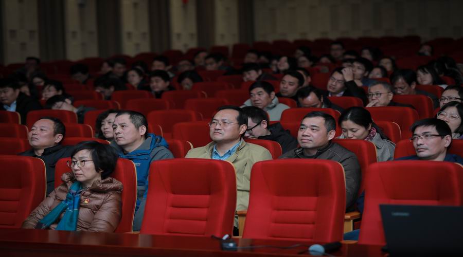 會(huì)議第一階段,學(xué)校邀請(qǐng)了光明日?qǐng)?bào)社江蘇記者站站長(zhǎng)鄭晉鳴教授就 “手捧滾燙故事 傳遞楷模精神”作專題報(bào)告。報(bào)告會(huì)上,鄭晉鳴站長(zhǎng)選取親身實(shí)例,講述了開(kāi)山島上王繼才夫婦艱苦守島的先進(jìn)事跡及采訪報(bào)道的心路歷程,與會(huì)者深深被王繼才夫婦守島衛(wèi)國(guó)的奉獻(xiàn)精神所感動(dòng),不少教職員工流下熱淚。